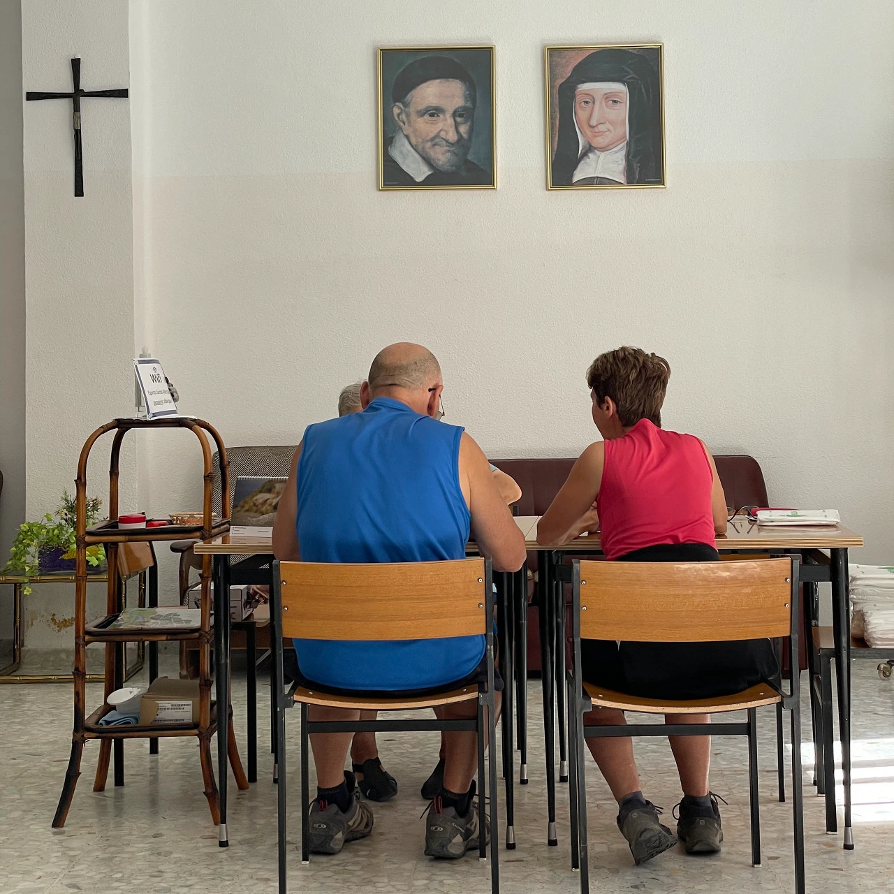 수녀원에서 운영하는 알베르게는 처음이다. 한국인들이 침대와 청결도에 호평을 했던 곳이다. 할머니(아마도 수녀님) 두 분이 아주 느리지만 능숙하게 체크인을 진행해 주셨다. 수녀원에서 운영해서 그런지 몇 가지 특이점이 있었다. 남녀 도미토리 방이 따로 있었고 모두 1층 침대만 있다. 샤워실, 화장실도 남녀 구분되어 있다. 정갈하고 소박한 인테리어에 먼지 한 톨 없어 보이는 것이 깐깐하게 관리하는 것이 분명했다. 시설에 주류 반입이 안된다는 규칙도 있었다. 그렇다고 하니 괜히 오늘따라 청량한 맥주가 더 땡긴다.