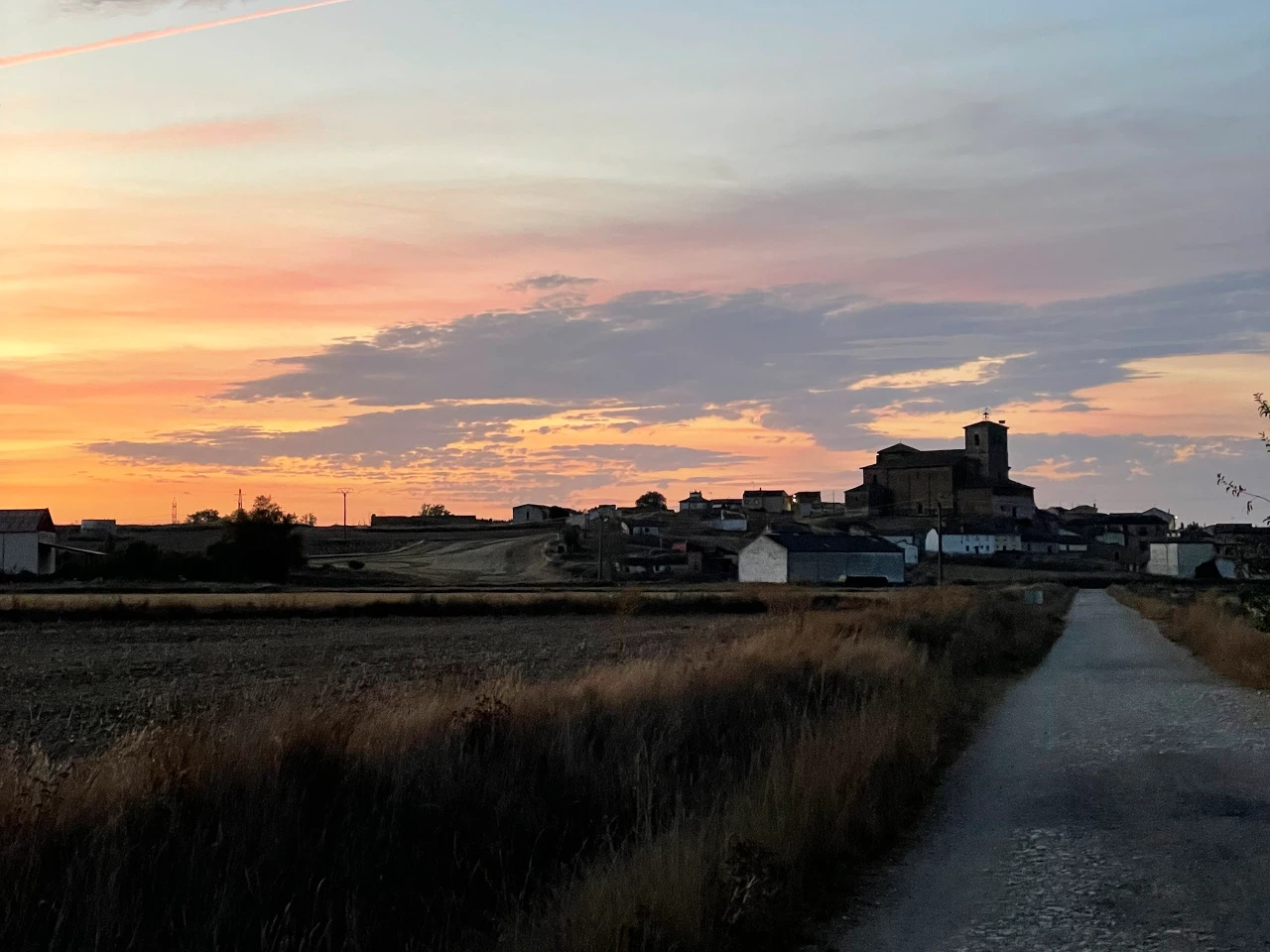 나의 요즘 걷기 전략은 초반 어두울 때 한 시간 반 정도 속도를 내며 걷는 것이다. 어차피 주변이 잘 안 보이고 춥기도 해서 빨리 걷는 게 낫다. 부르고스 이후 매일 만나고 있는 메세타 구간을 조금 수월한 시간에 걸을 수도 있다. 그늘 없는 메세타를 뜨거울 때 걷는 것은 몹시 힘이 드니까.