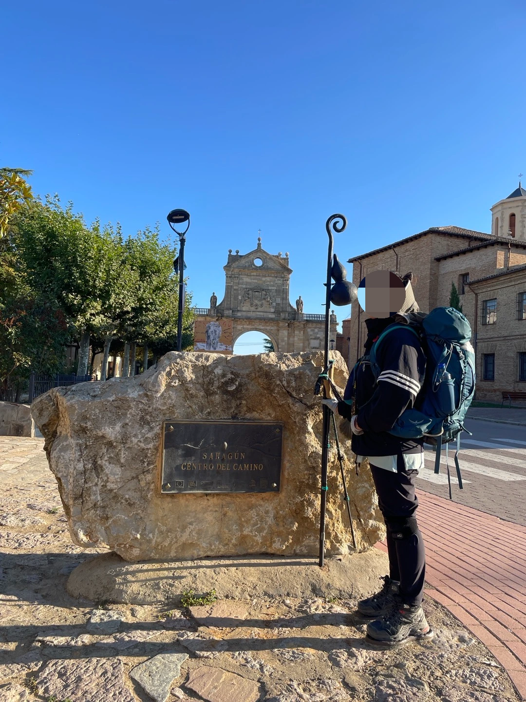 사하군은 발렌시아 지역에서 레온 지역으로 넘어가는 첫 마을이기도 하고, 또한 까미노 프랑스길의 중간 지점을 지나는 곳이다. 메그는 어제 이 마을에 도착해 오늘 이곳에서 출발했을 것이다. 사하군의 어느 약국에서 Y가 급한 화장실 용무를 해결하고 나올 때쯤, 이반과 소은을 만났다. 우리는 벌써 까미노 중간까지 온 것이 실감 나지 않고 아무 느낌도 없다고 말했지만 막상 중간지점에서는 기념사진 한 장씩은 남겼다.