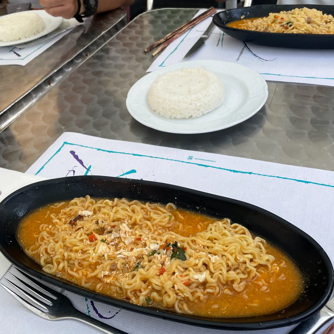 오랜만에 5명 완전체가 되어 근처 식당으로 늦은 점심을 먹으러 갔다. 이 식당에서 신라면을 판다고 소문이 자자했기에 크게 고민하지 않고 선택할 수 있었던 식당이다. 다만 점심 메뉴가 고민되었는데, 샤워와 빨래를 하고 나왔으니 벌써 3시가 되어가는 애매한 시간이었기 때문이다.
