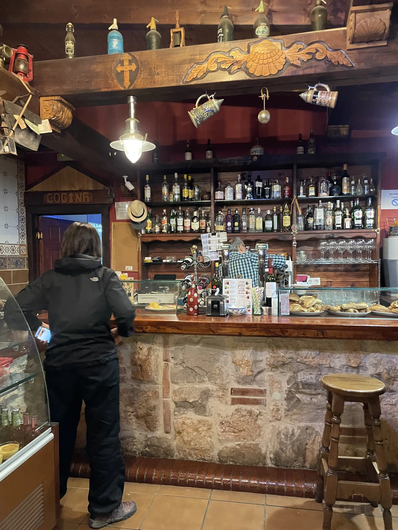 한 시간 반을 걸어도 여전히 어두운 까미노. 어느 마을인지도 모르는 곳에 도착해 환하게 불이 켜진 곳으로 홀린 듯 향했다. 그곳은 오래된 사진들과 까미노 소품들로 가득했다. 이 새벽의 기운과 걸맞게 마치 신비로운 이야기가 담겨 있을 것만 같은 곳이었다.