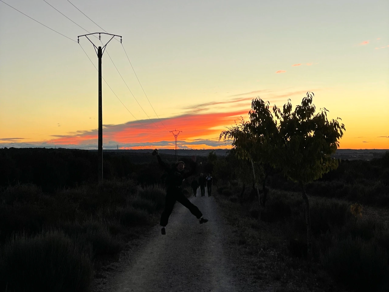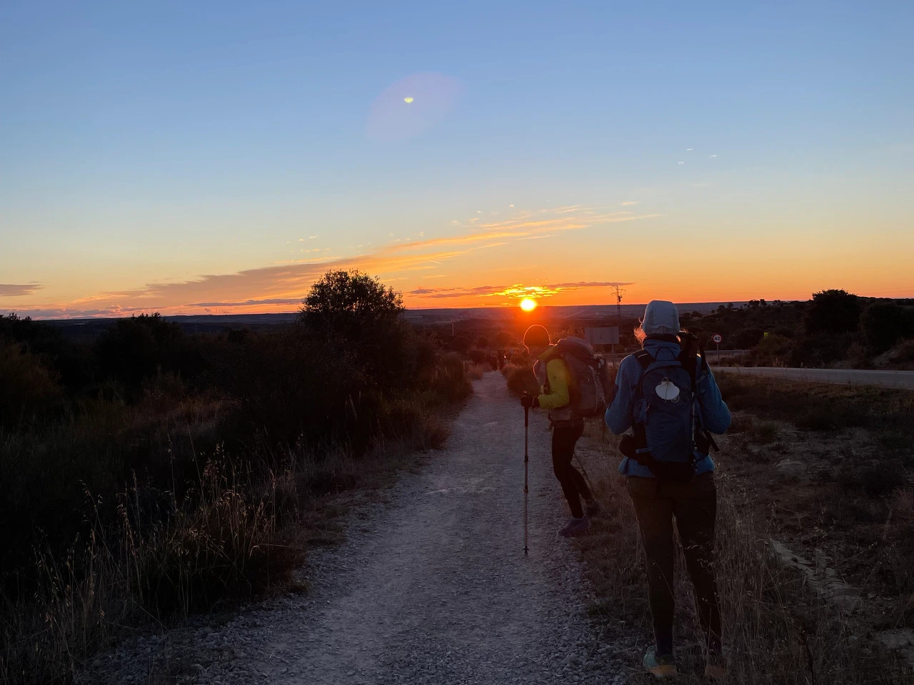 레온에서 까미노를 시작하는 사람이 꽤 많은 것인지 요 며칠 사람이 많아진 느낌을 받았다. 모두 한길을 걷는데 앞에 한 명이 뒤돌아보면 뒤에 사람들도 도미노처럼 연달아 뒤돌아보게 되는 콩트 같은 상황도 벌어진다. 다들 해가 만들어 내는 진풍경을 기대하고 있는 것이었다.