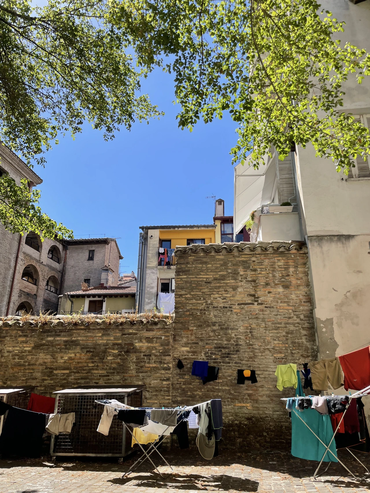 여기 뒤뜰은 아주 넓고 근사했다. 빨랫줄도 있고 지친 순례자들을 위한 의자도 있다. 뜨거운 햇빛을 막아주는 듬직한 나무도 있었다.