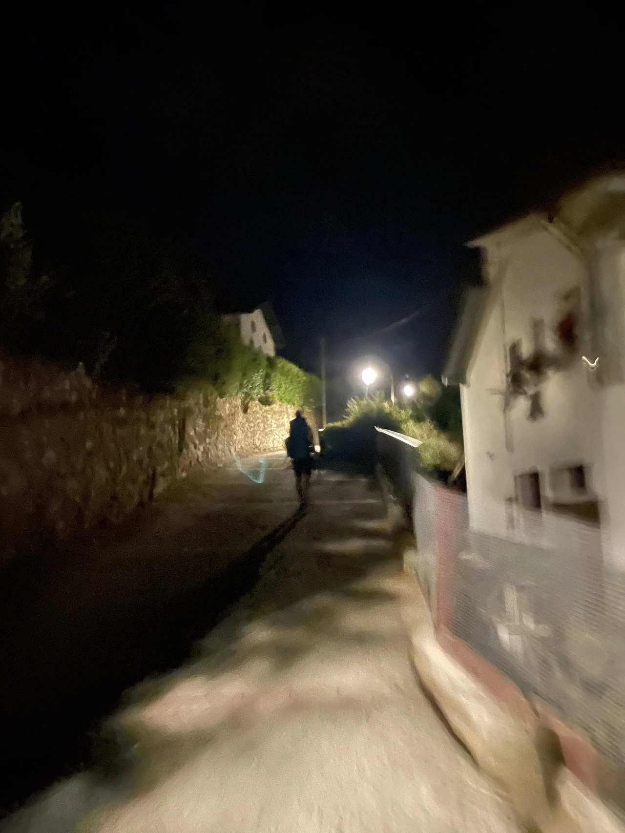 산길이라 랜턴을 비추지 않는 곳은 보이지도 않는다. 한 줄로 가야 할 만큼 길이 좁아서 둘이 나란히 유유자적하며 걸을 수도 없었다. 내 헤드랜턴이 그의 손전등보다 강력해서 주로 내가 앞서서 어둠을 헤쳐갔다. 문신을 잔뜩한 마리오는 동물이 무섭다며 좌우로 손전등을 두리번거리곤 했다.