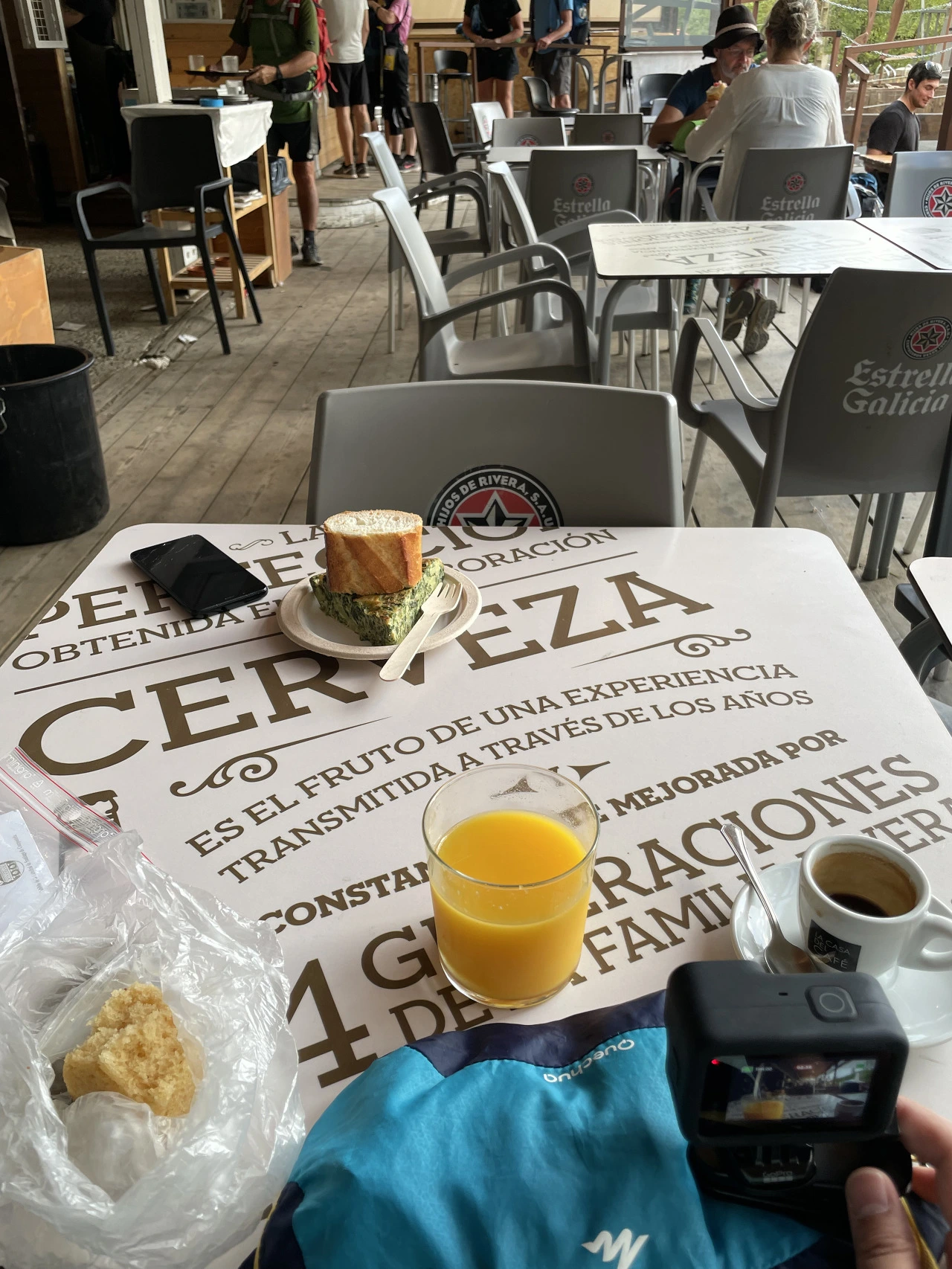 쉬는 동안 바에 점점 많은 사람이 도착한다. 순간 그들이 같은 알베르게로 가는 경쟁자로 보인다. 콜록.. 아이쿠 안 되겠다. 어서 일어나서 출발해야지.