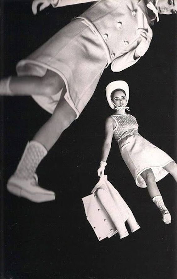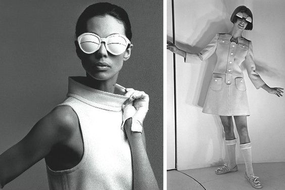 André Courrèges는 60년대를 정의하는 실루엣으로 삼각형 모양의 시프트 드레스를 선보이며,