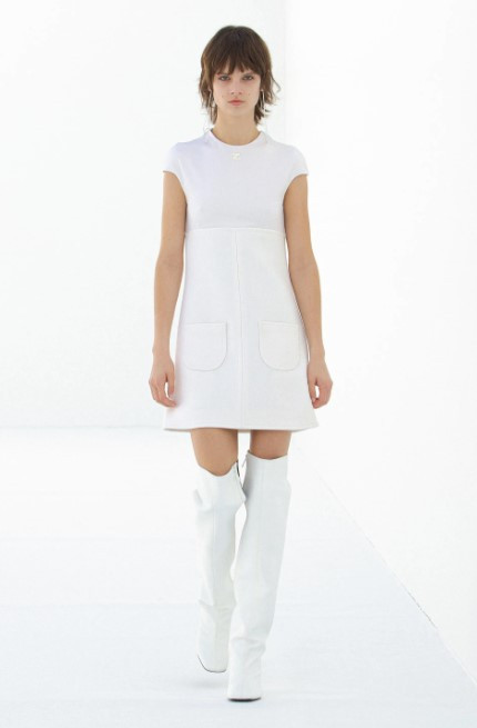 그 시절 André Courrèges의 테크니컬 의류는 여성복에 활기를 불어넣었으며, 현재의 젊은 에너지에 힘입어 아방가르드한 기하학과 스포츠 클래식을 혼합한 새로운 룩으로 또다시 해석되고 있다.