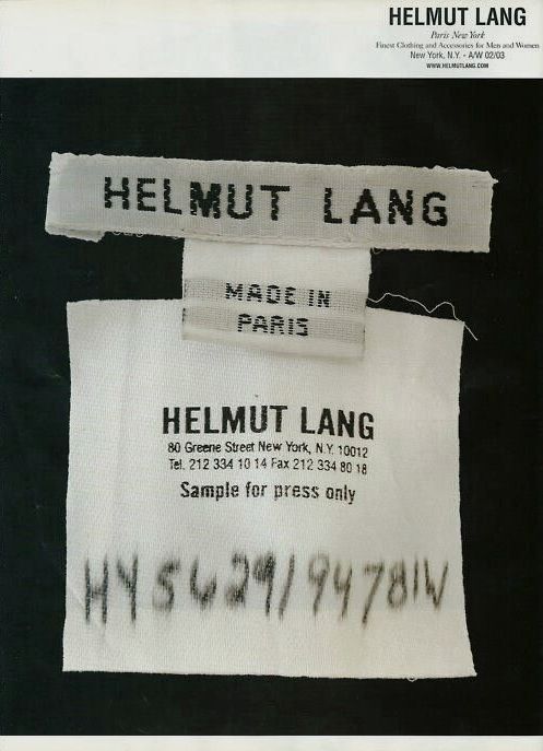 90년대 미니멀리즘과 함께 등장하며 80년대 히피걸들이 어른이 되어 입는 옷이라고 불린 헬무트 랭은 미니멀하고 해체적인 디자인을 특징으로 하며 다양한 시도를 통해 90년대 패션계의 혁신을 가져왔다.