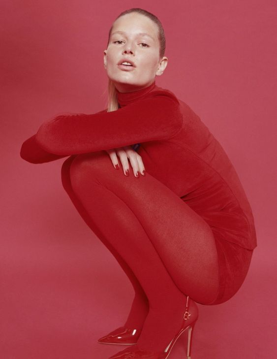 레드컬러 스타킹이나 니삭스로 과감하게 포인트를 줘 보는 것도 트렌디한 선택지!