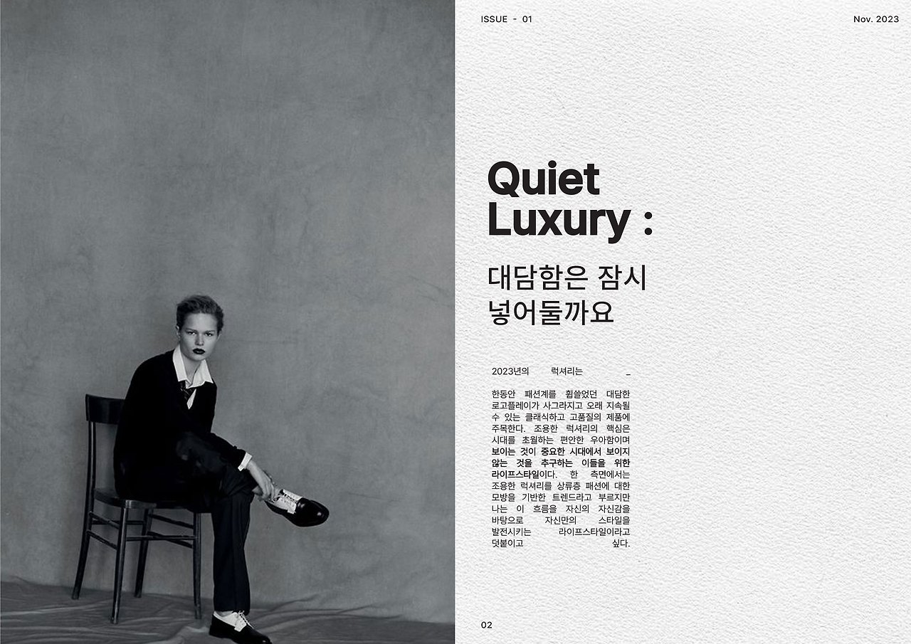 조용한 력셔리의 핵심은 시대를 초월하는 편안한 우아함이며,
