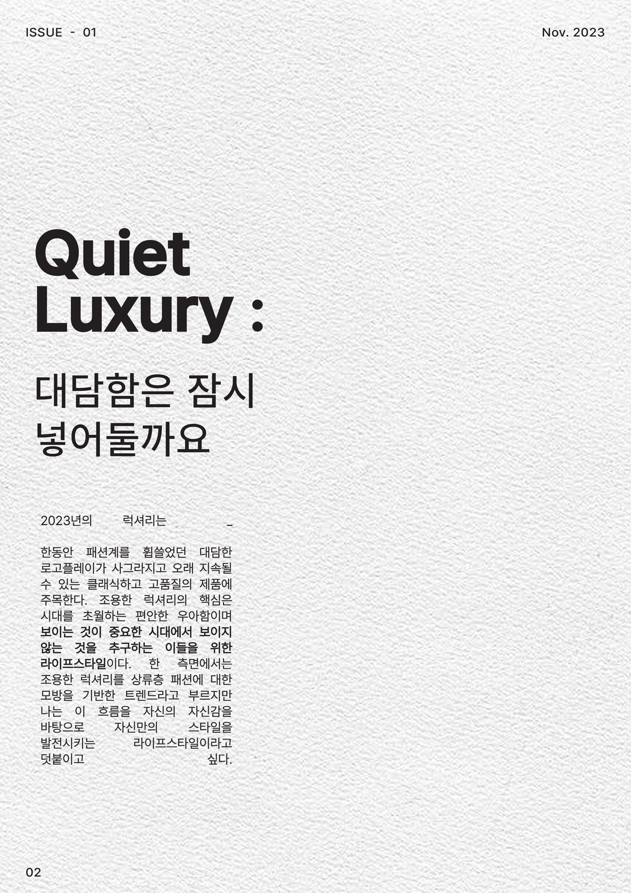 보이는 것이 중요한 시대에서 보이지 않는 것을 추구하는 이들을 위한 라이프스타일이다.