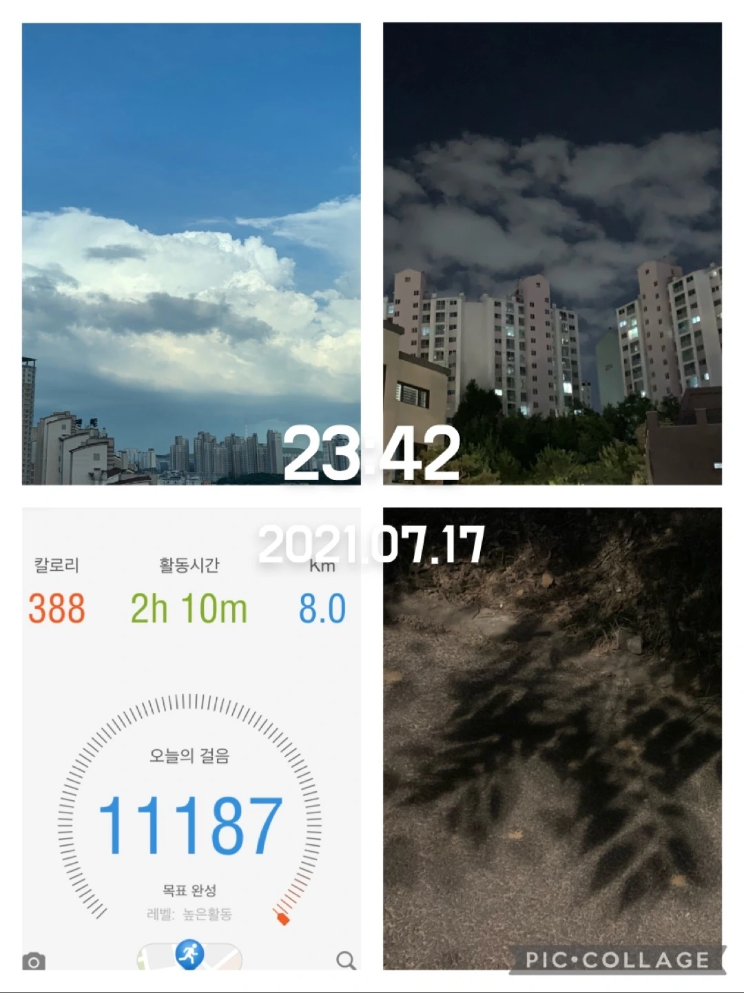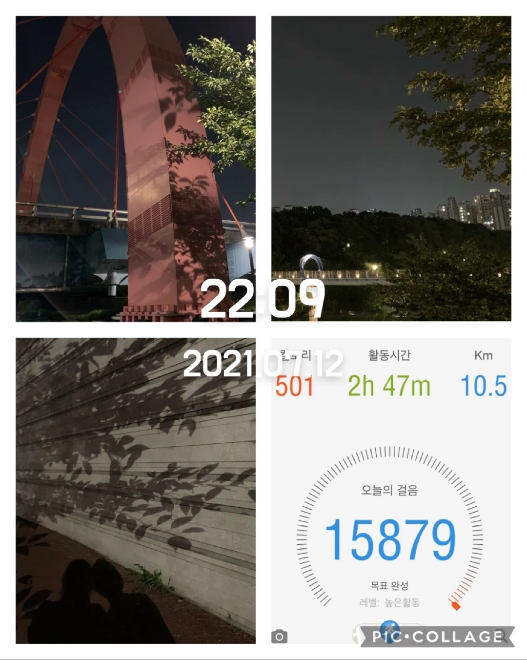 어제 너무 지치고 더워서 안 나가고 있었더니 희승이가 쉬라고 말해줬다. 나는 옷을 챙겨 입고 나가며 “나와의 약속이라서 걸어야 해!”라고 말하고 운동화를 신었다. 그래. 난 걷고 싶다. 오래오래 걷고 싶다. 오래오래 살고 싶어서 걷는 게 아니다. 지금 행복하고 싶어서 걷는다.