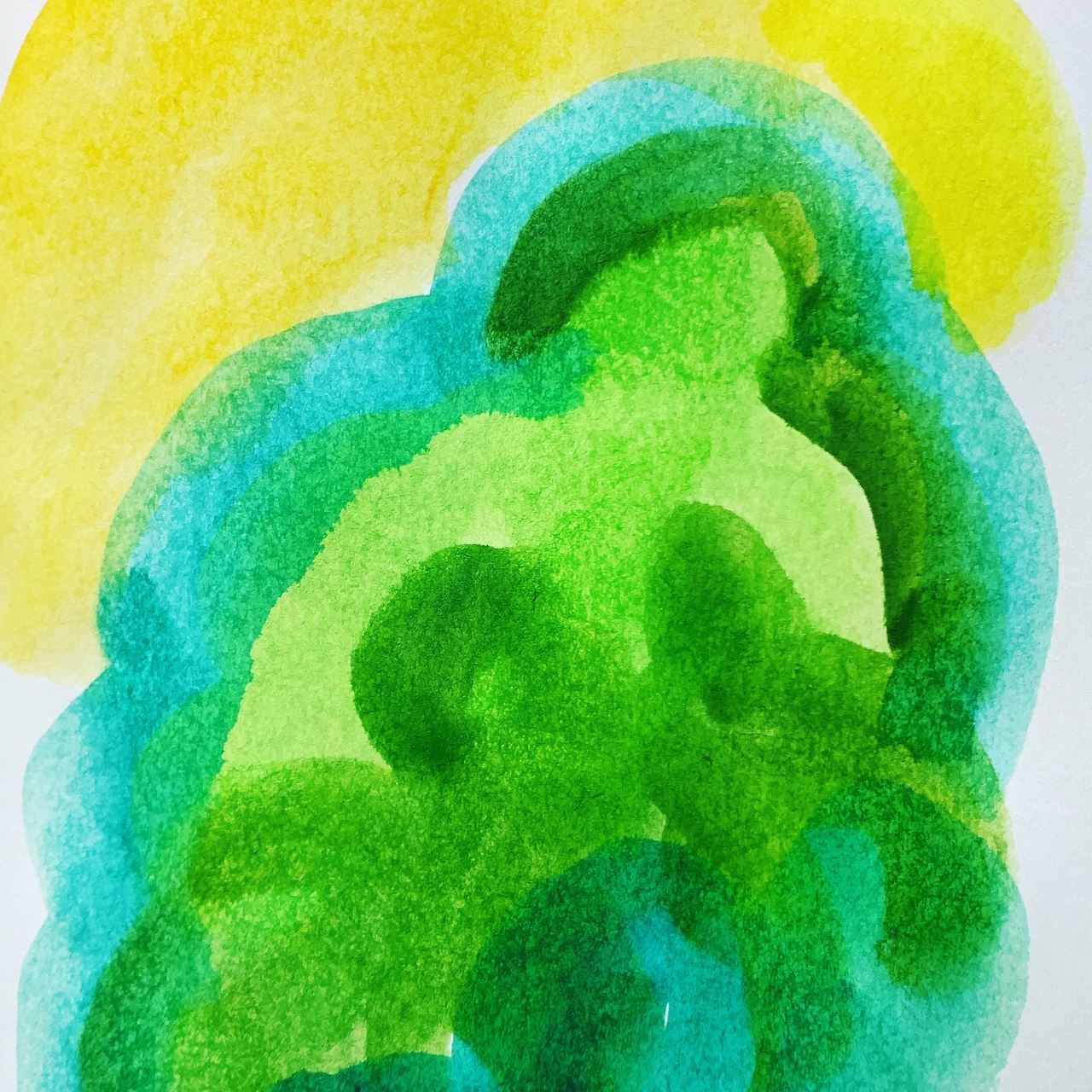 봄이 온다고 생각하니 기분도 좋아졌고 푸르른 나무들을 생각하니 초록 계열의 물감과 노랑으로 손이 간다. 물감이 뭉게뭉게 피어난다.