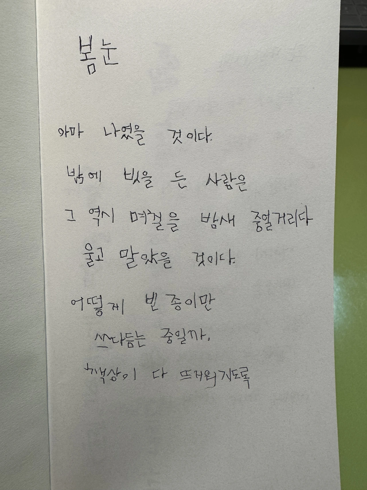꾹꾹 눌러쓴 왼손글씨로 누군가에게 편지를 쓰고 싶다. 삐뚤빼뚤한 내 마음이라도 다잡듯이 왼손에 잔뜩 힘을 주어 꾹꾹 눌러 마음을 전하고 싶다.