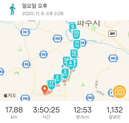 걷기가 얼마나 즐겁냐 하면 아침에 눈을 뜨면 오늘은 어디를 걸을까 생각하고, 잠들기 전에 내일은 어디를 걸을지 생각한다. 운동화를 신고 현관문을 나서는 게 너무 행복하고 아직은 짱짱한 내 두 다리에 감사함을 느낀다. 어디를 걸을지 미리 계획을 세워도 어차피 나는 즉흥적으로 움직인다. 산에 갈 때도 있고, 공원을 크게 돌거나, 가까운 지하철역까지 갔다가 되돌아오기도 한다. 오늘은 두 번째로 4시간가량을 쉬지 않고 걸어 금릉역에 갔다 왔다. 우리 집에서 가장 가까운 야당역까지는 빠른 걸음으로 20분 넘게 걸린다. 거기서부터 운정역을 지나 작은 개천을 따라 걷다 보면 금릉역이 나온다. 집에서부터 금릉역까지는 2시간 가까이 걸린다.