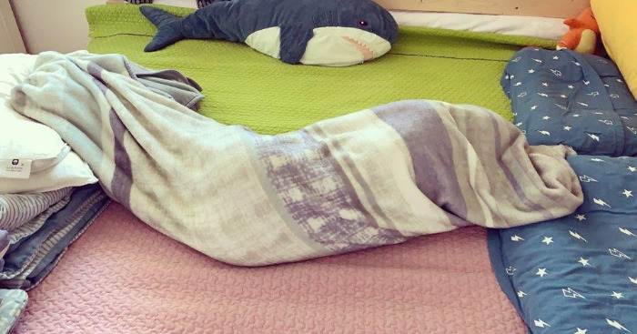 점심을 준비하는데 자꾸 신경이 쓰이게 하길래 짜증을 몇 번 냈더니 울면서 방으로 들어간다. 밥 먹으라고 불렀지만 나오지 않아 들어가 보니 번데기가 되어있다. 엄마 뱃속에서 나온 애를 나비처럼 날게 해 주지는 못해도 번데기로 만들어버리다니 미안하게 됐다! 나의 최대 장점인 빠른 사과로 같이 웃으며 점심을 먹었다.
