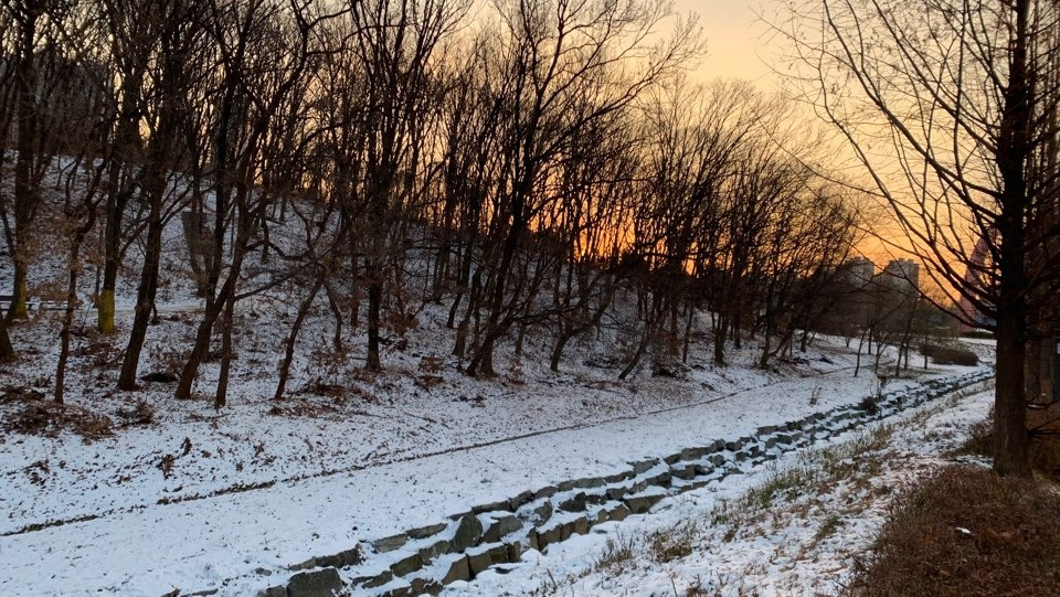오늘은 치과에 다녀오며 잠시 산책을 했다. 밤새 눈이 와서 쌓였다. 너무 추워서 집에 들어왔다. 햇빛을 잠깐이라도 쐐서 좋았다. 당분간은 맘껏 걷기는 힘들겠지만 틈틈이 시간을 내서 걸어야겠다. 아파트 뒷길이라도 잠시 걸어야겠다. 매일 조금씩 걷다 보면 겨울도 가고 코로나도 가겠지!