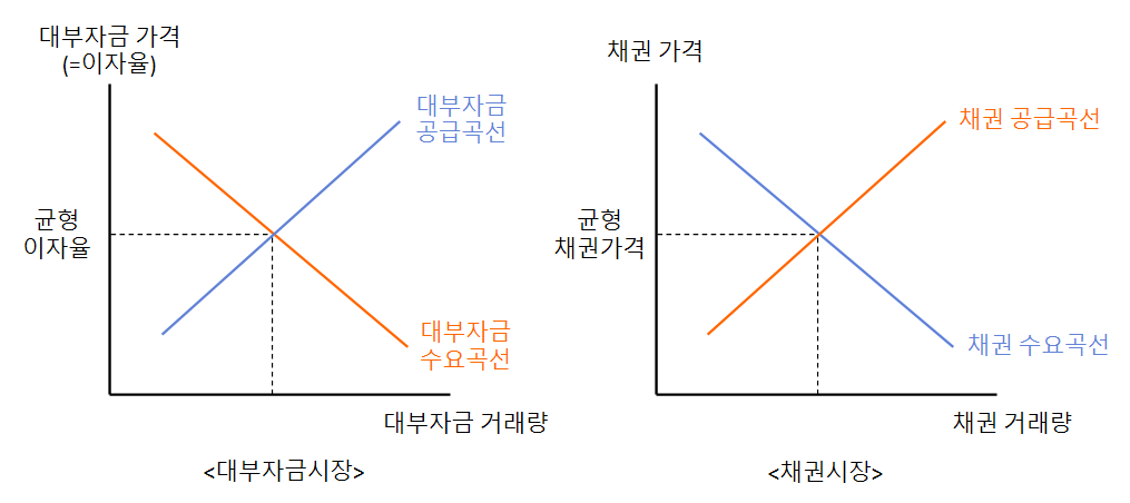 이로써 이자율과 채권가격 사이의 반비례 관계를 대부자금시장과 채권시장, 두 시장이 함께 움직이는 모습으로 다시 한번 이해해볼 수 있다.