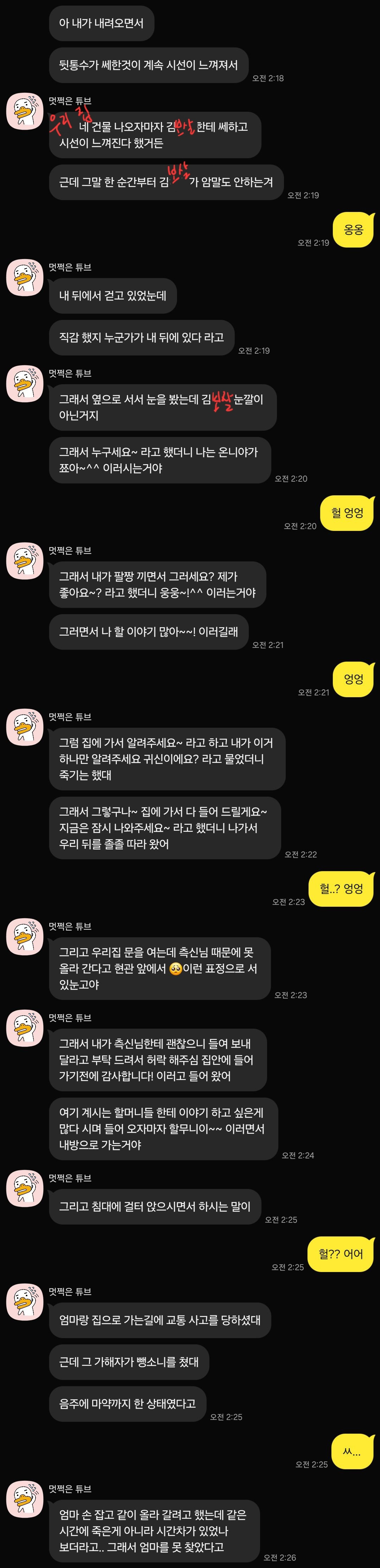 이 때문에 매일같이 우리 집에 놀러 오는 김애동이 집에 돌아가는 길엔 장군 할머니께서 나오셔서 부채로 주변을 정화하면서 돌아가실 때가 종종 있었다. 그리고, 그날도 역시 김애동이 나에게 카톡을 보냈다. 계단에서부터 귀신이 많아서 장군 할머니께서 부채질하시면서 오셨다고. (*김애동이 당시 오간 이야기도 전달해 주어 대화체로도 작성하도록 하겠다.)