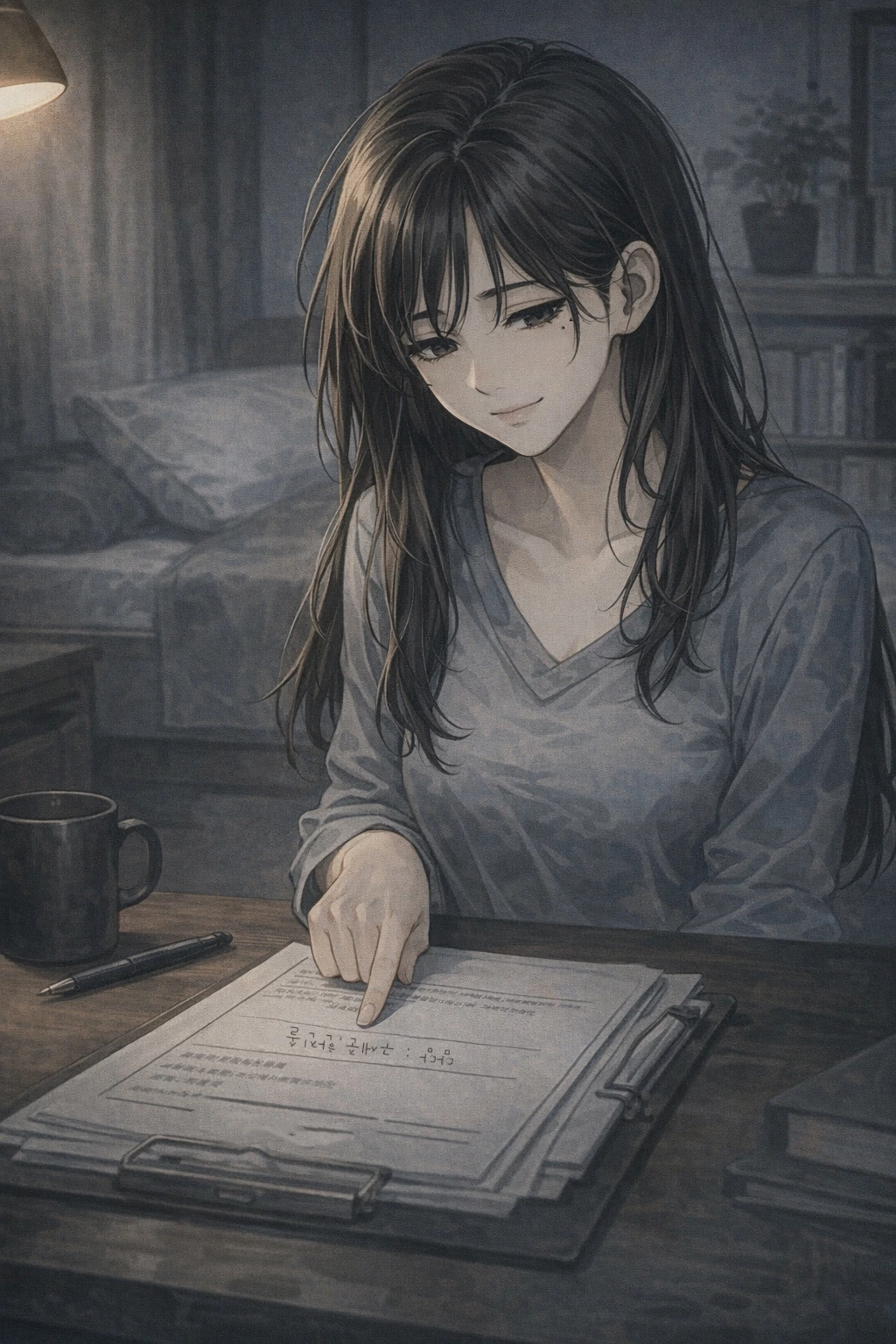 유리벽 너머로 사건 자료가 떠 있었다.