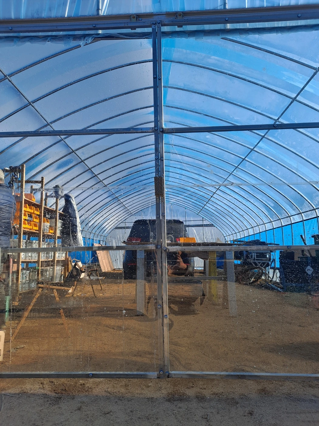 생에 최초로 지은 집'비닐하우스'. 너무 힘이 들었기 때문에 우리 모두는 이것이면 충분하다고, 집은 그만 짓자고 입을 모았다.