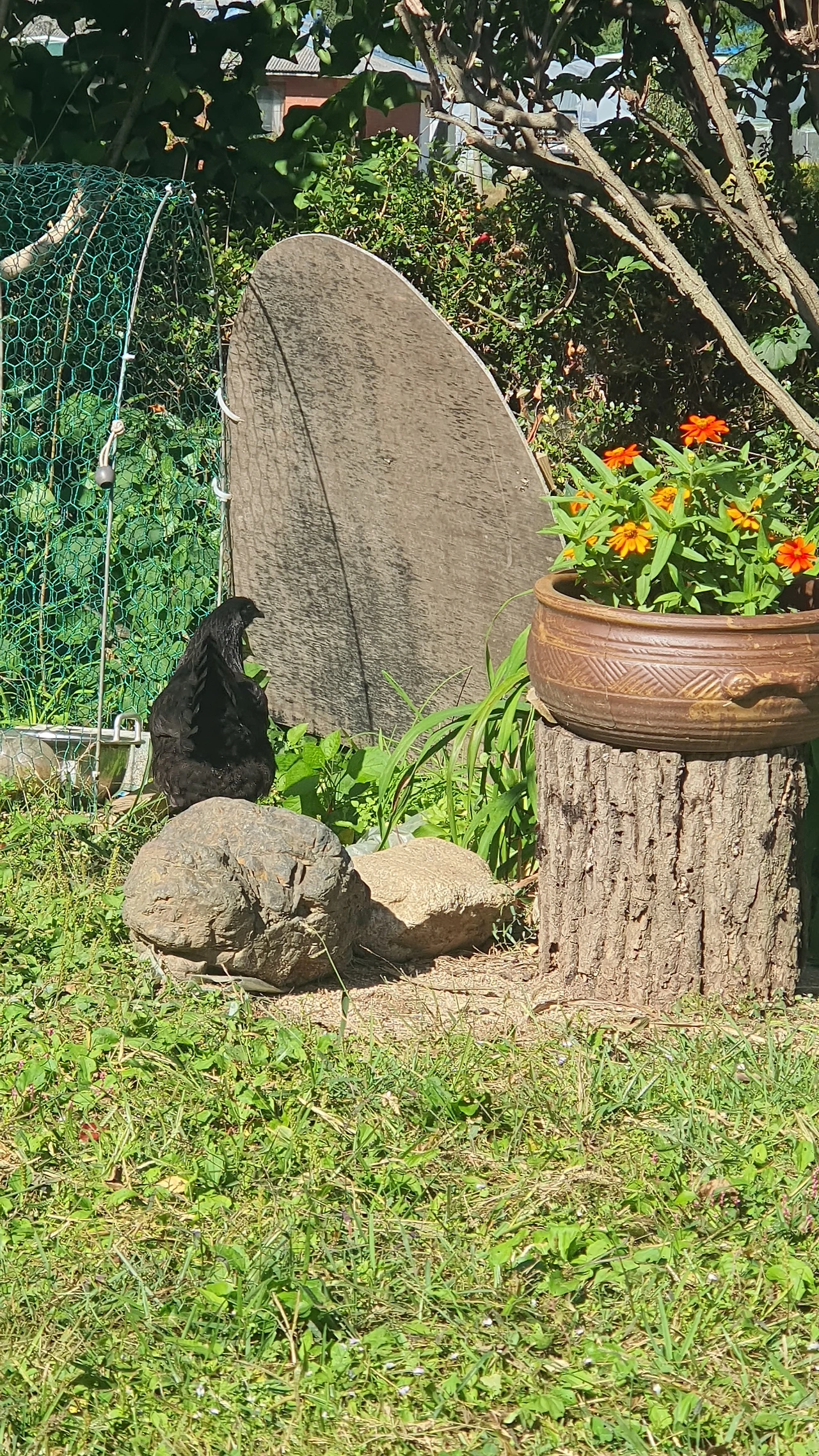 오골계 오드리가 가을벌레를 잡아먹고 다닙니다. 사료가 필요 없어 보여요. 이 큰 밭과 마당의 벌레는 몽땅 오드리 것이니 말입니다.