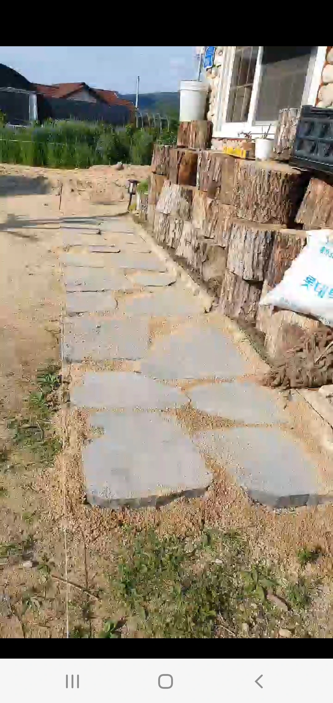 홍천 철물점에 가서 그동안 눈도장을 몇 번씩이나 찍어두었던 구멍이 뚫려 있는 현무암 디딤석을 골랐다. 8cm 두께의 부정형 돌의 한 팔레트는 1.3톤이며 돌 한 개의 무게는 평균 40킬로다. 4 팔레트를 샀다. 디딤석 까는 일은 너무 힘이 들기 때문에 인부를 쓸 경우 하루 일당이 50만 원이라며 운을 뗀다. 내가 할 수 없는 일이지만 남편을 바라보며 하품을 했다. 철물점 주인은 눈치 빠르게 꼬리를 감추었다. 뭐 어느 집은 여자 셋이 사는데 쉬엄쉬엄 자기들끼리 디딤 석을 깔았다며 너스레를 떤다. 복권 당첨이면 얼마나 좋겠냐마는 결국 남편은 디딤석을 까는 일에 당첨되었다. 디딤석 노래하는 마누라 덕에 그는 디딤돌을 모두 깔 때까지 고생길이 열렸다.