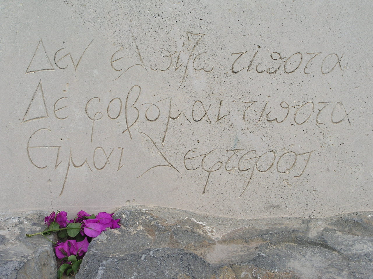 놀랍게도 <그리스인 조르바>는 실존 인물에 기반한 소설이라고 합니다. 작가 니코스 카잔차키스가 '요르기오스 조르바스'라는 사람과 함께 석탄 채굴 사업을 했었는데, 당시의 경험을 토대로 훗날 소설을 쓴 것입니다. 니코스 카잔차키스는 일생 동안 국가 간 전쟁과 종교적 탄압을 경험했고, 이에 영향을 받아 끊임없이 자유를 갈망하고 탐구했죠. 그는 세상을 떠나는 순간까지 수많은 나라를 자유롭게 여행했고, 인간의 자유에 대한 글을 썼습니다. 그의 묘비에는 다음과 같은 글이 써져 있습니다.