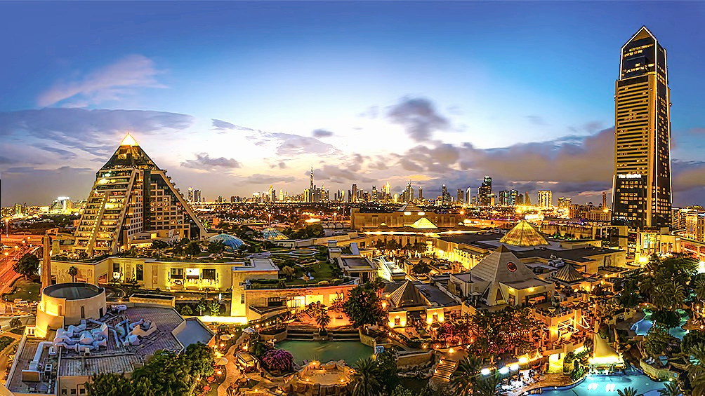 그 옆에는 피라미드 형태의 호텔, Raffles Dubai가 서 있다.