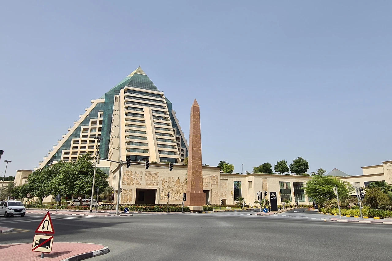 커다란 피라미드와 오벨리스크 모양의 호텔,