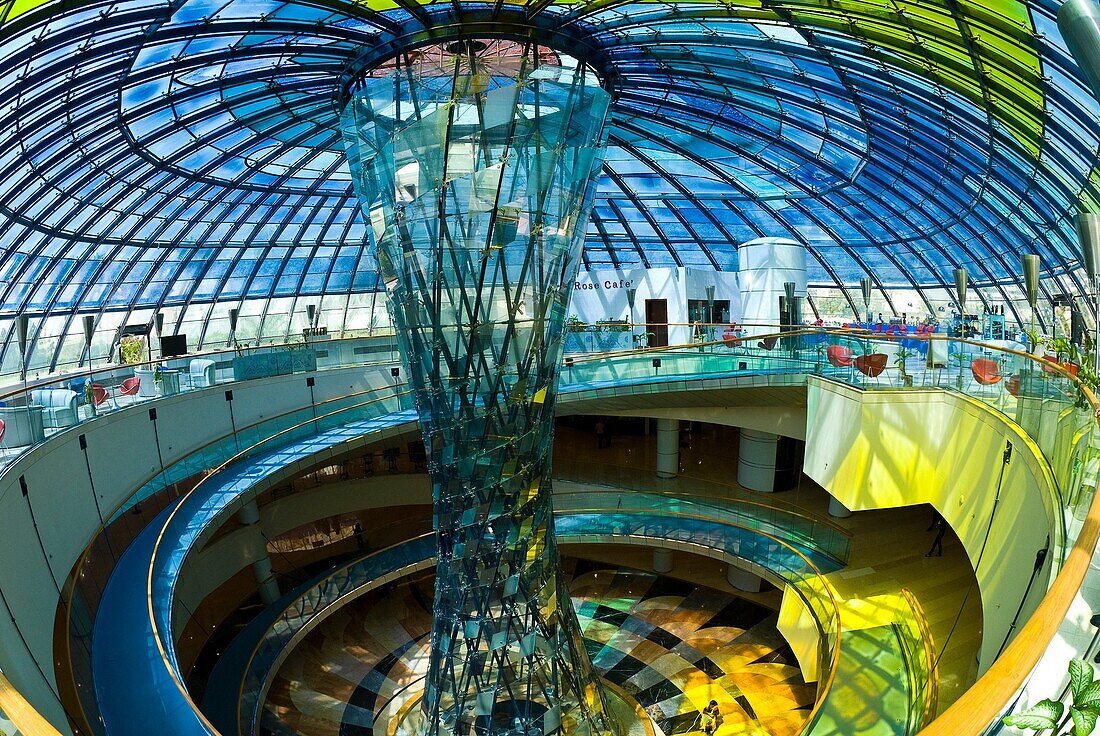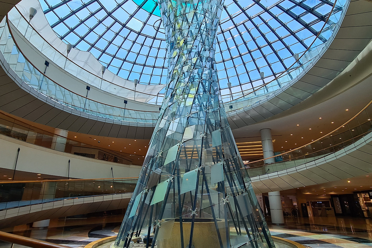 와피몰의 피라미드는 위에서 아래로 열려 있는 밝고 아름다운 공간이다.