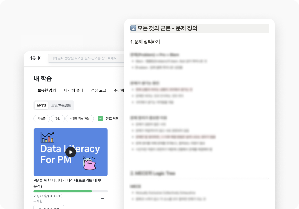 위의 강의가 내용이 참 좋고 도움이 많이 되었어요. 디자이너지만 PM = 미니 CEO라는 말이 이해되는 강의였습니다.