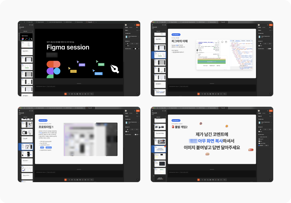 하지만 디자이너의 짬바로 어찌어찌 잘 끌고 갔지요 : ).... 현재 피그마 슬라이드를 사용하는 팀도 매우 많답니다. (아주 뿌듯하고 보람이...!)