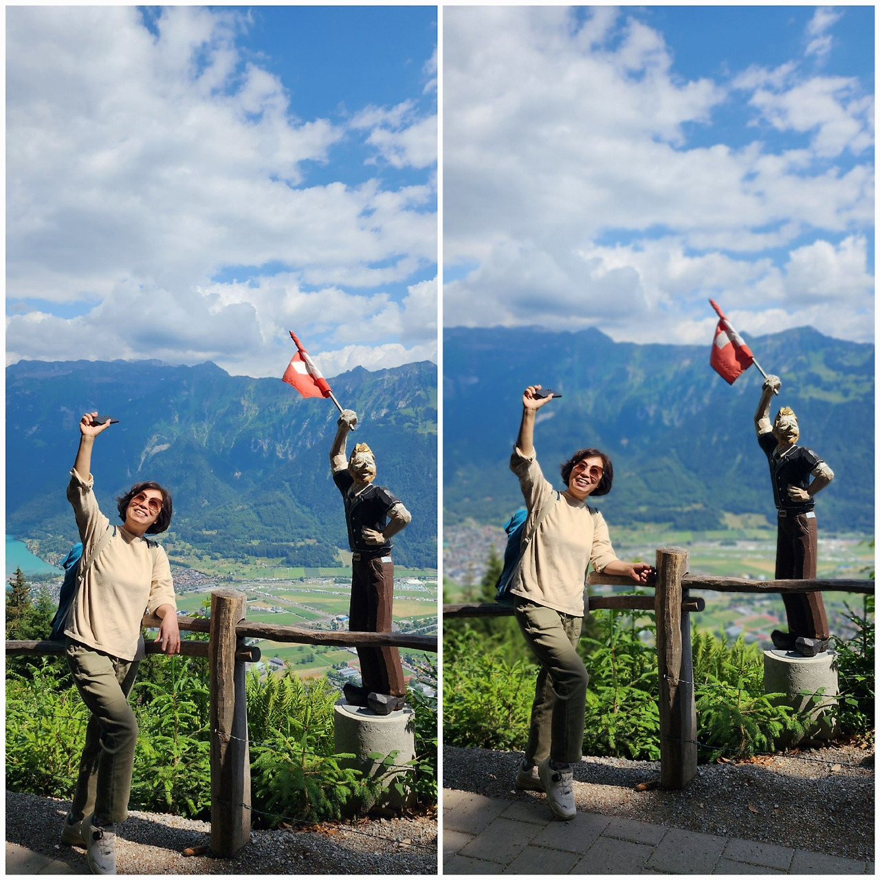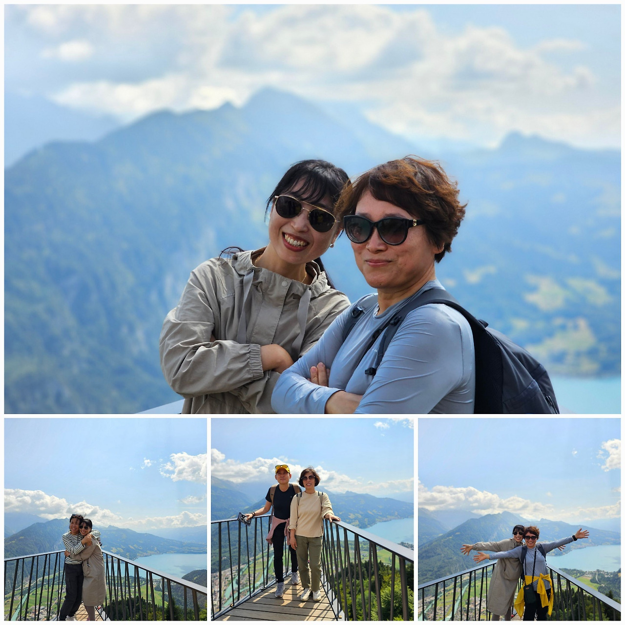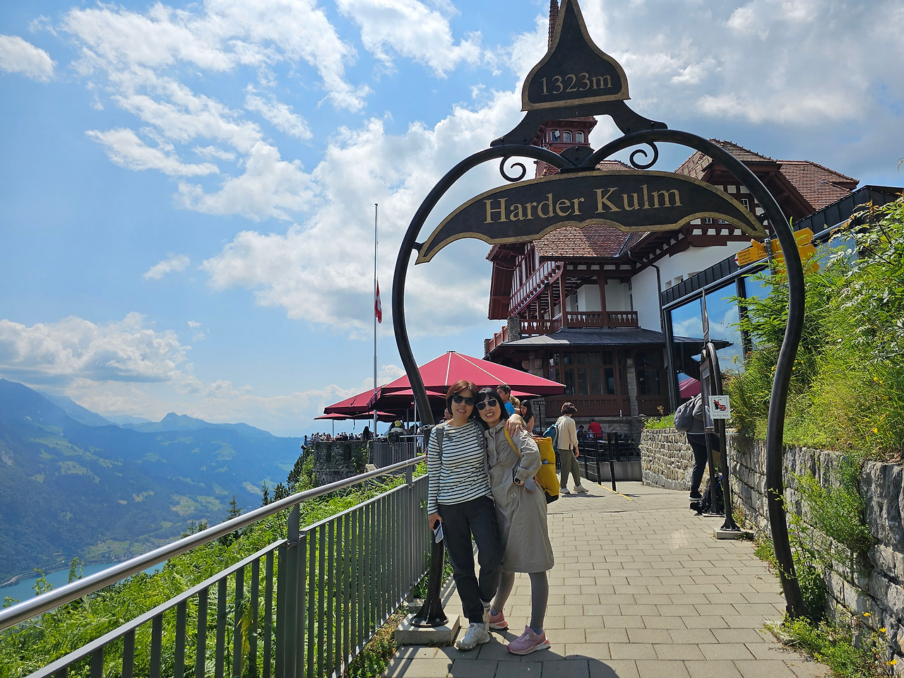 내려가는 길엔 스위스 국기를 든 아저씨와 나란히 하늘을 바라보며, 하더 쿨름이 뷰 맛집이라는 사실을 인정한다.