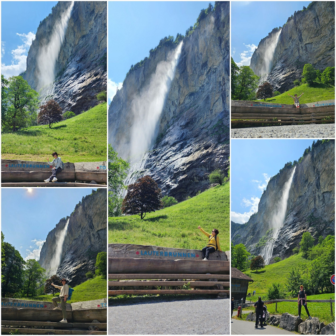 각자의 스타일로 슈타우프바흐 폭포를 배경으로 남긴다.