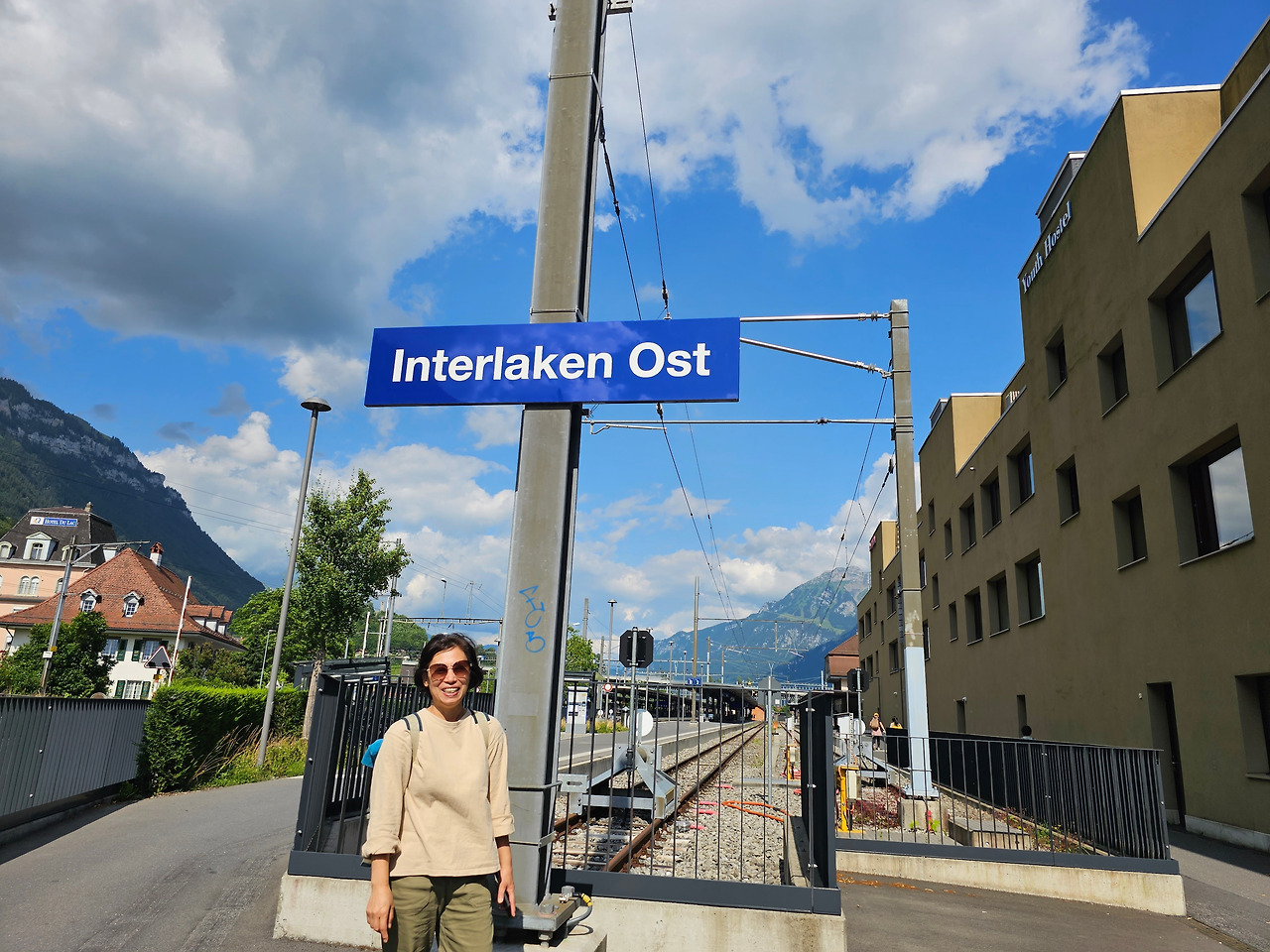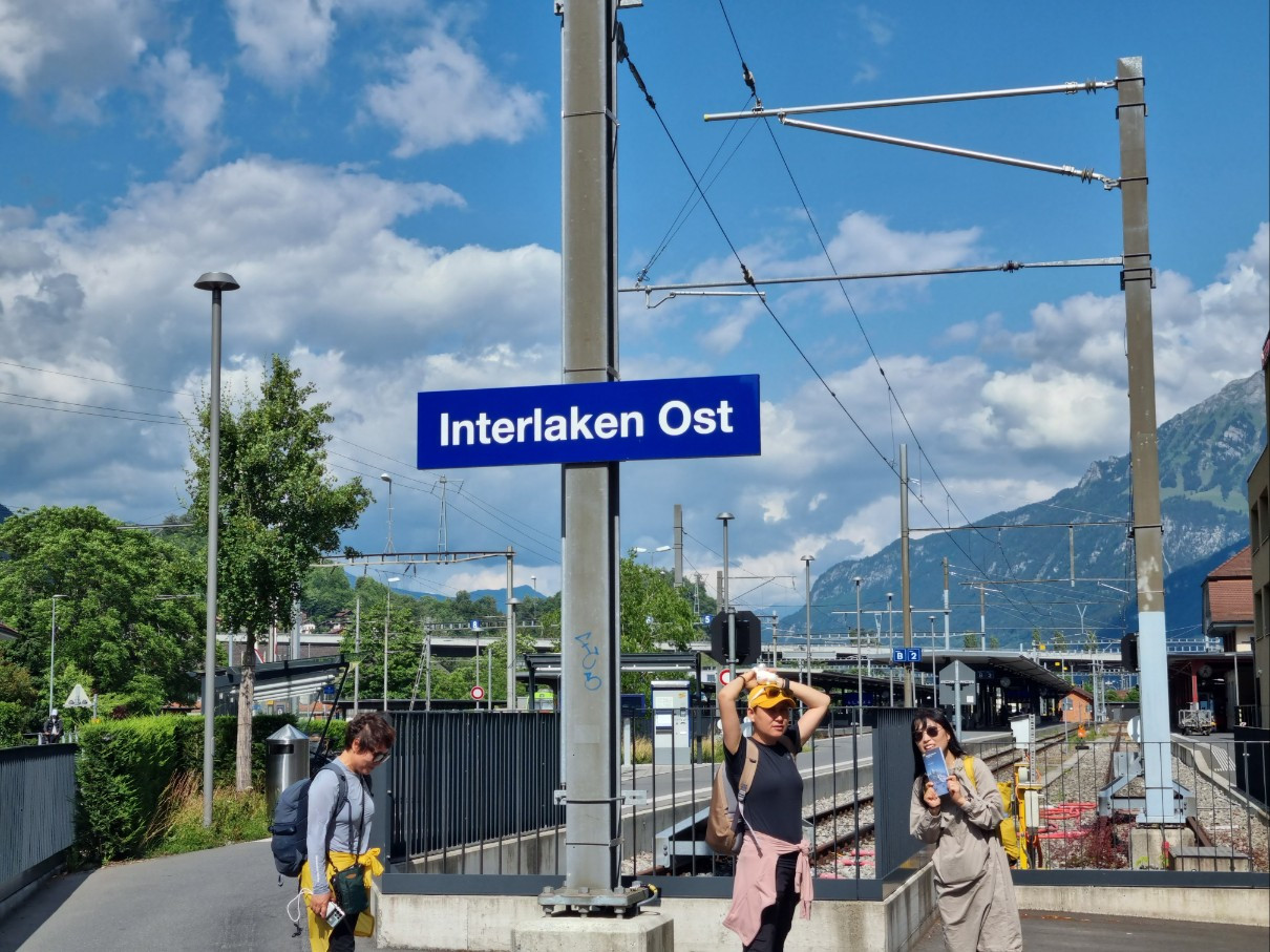 인터라켄 오스트(동역) 앞에서, 하늘이 멋져서 사람을 불러 세운다. 한 장 찍자!