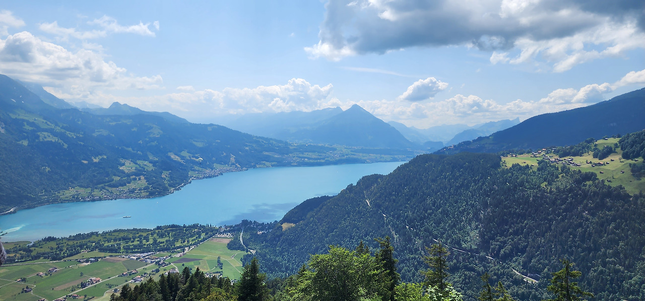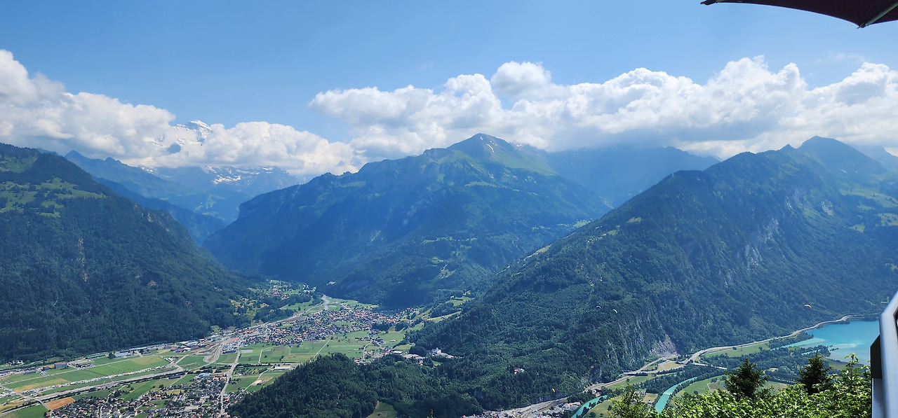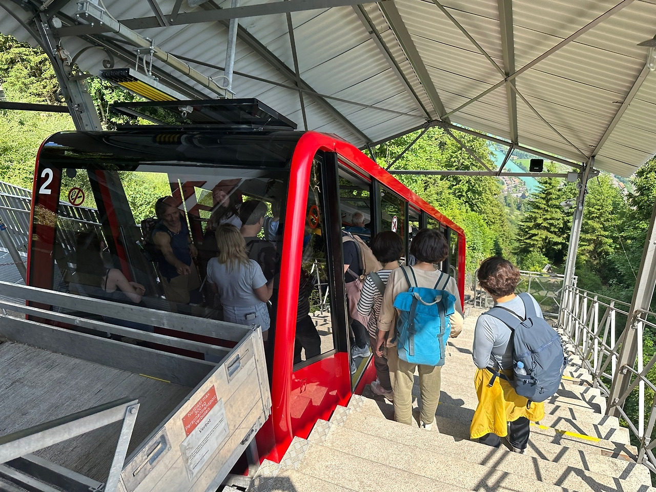 하더 쿨름으로 갈 때는 파노라마 케이블카(파노라마 케이블철도, Panorama Funicular)를 탄다. 급경사를 오르는 기차를 케이블카로 부르는 건 조금 어색하지만 무어라 부르든 상관없다. 케이블카 안은 오르고자 하는 사람들로 빼곡하다. 2~3번을 기다려서 케이블카를 탄 것 같다. 인터라켄에서 접근성이 좋은 만큼 사람이 많기도 하고, 케이블카가 작은 기차 한량 정도밖에 되지 않아 한번에 탈 수 있는 인원이 적은 것도 이유인 듯하다.
