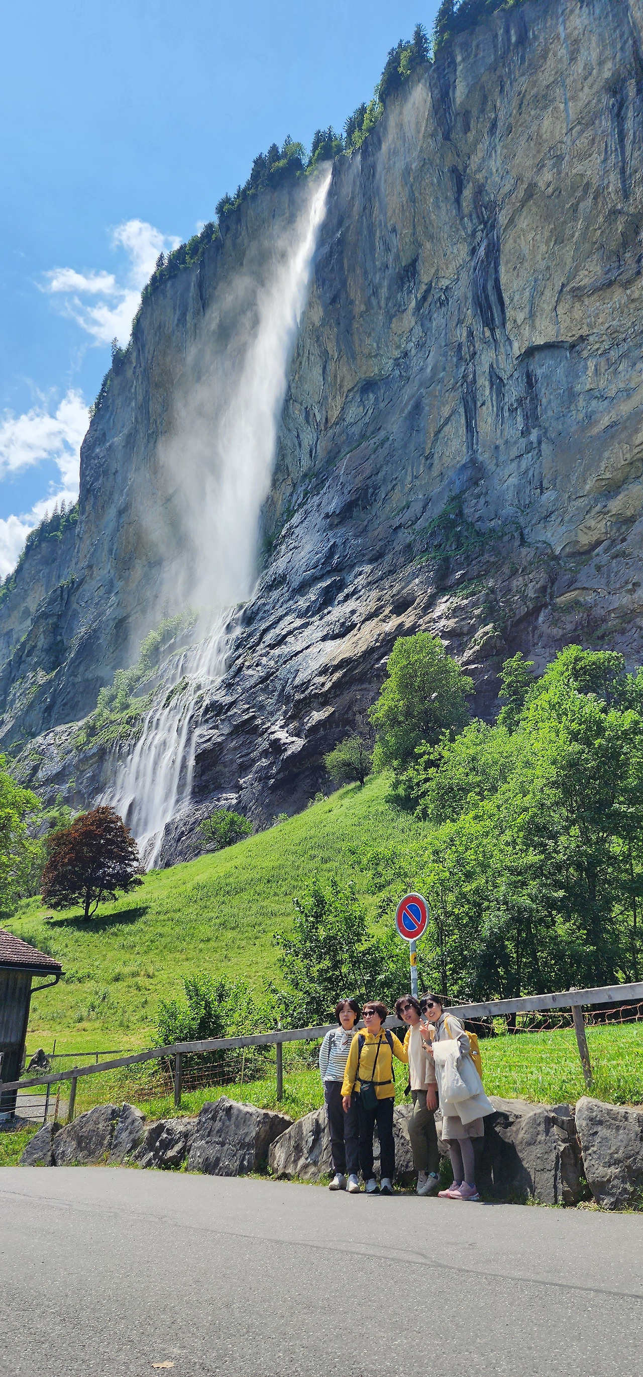 Lauterbrunnen: 슈타우프바흐 폭포 앞에서 단체 기념 샷
