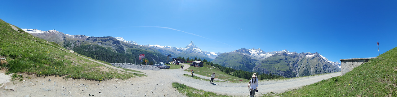 수네가(Sunegga) 역 앞에서 파노라마로 마터호른을 담는다.