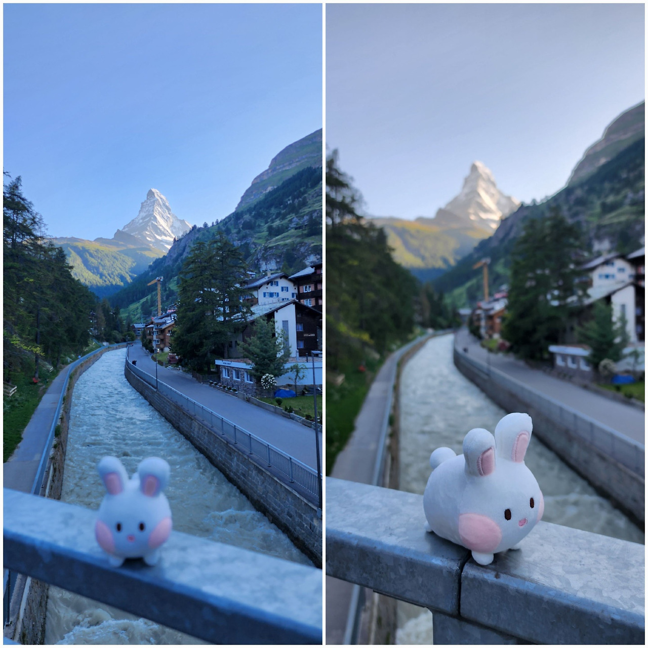 체르마트 시내를 돌아다니다가, 은에게 사진을 한 장 부탁했다. 옛 기억에 이쯤에서 찍은 사진이 있는 것 같다고 하면서. 찍고 보니 위치가 좀 다르긴 했다. 예전에는 체르마트 역 앞이었고, 이번에는 그보다는 조금 더 몇십 미터 남쪽이었다.