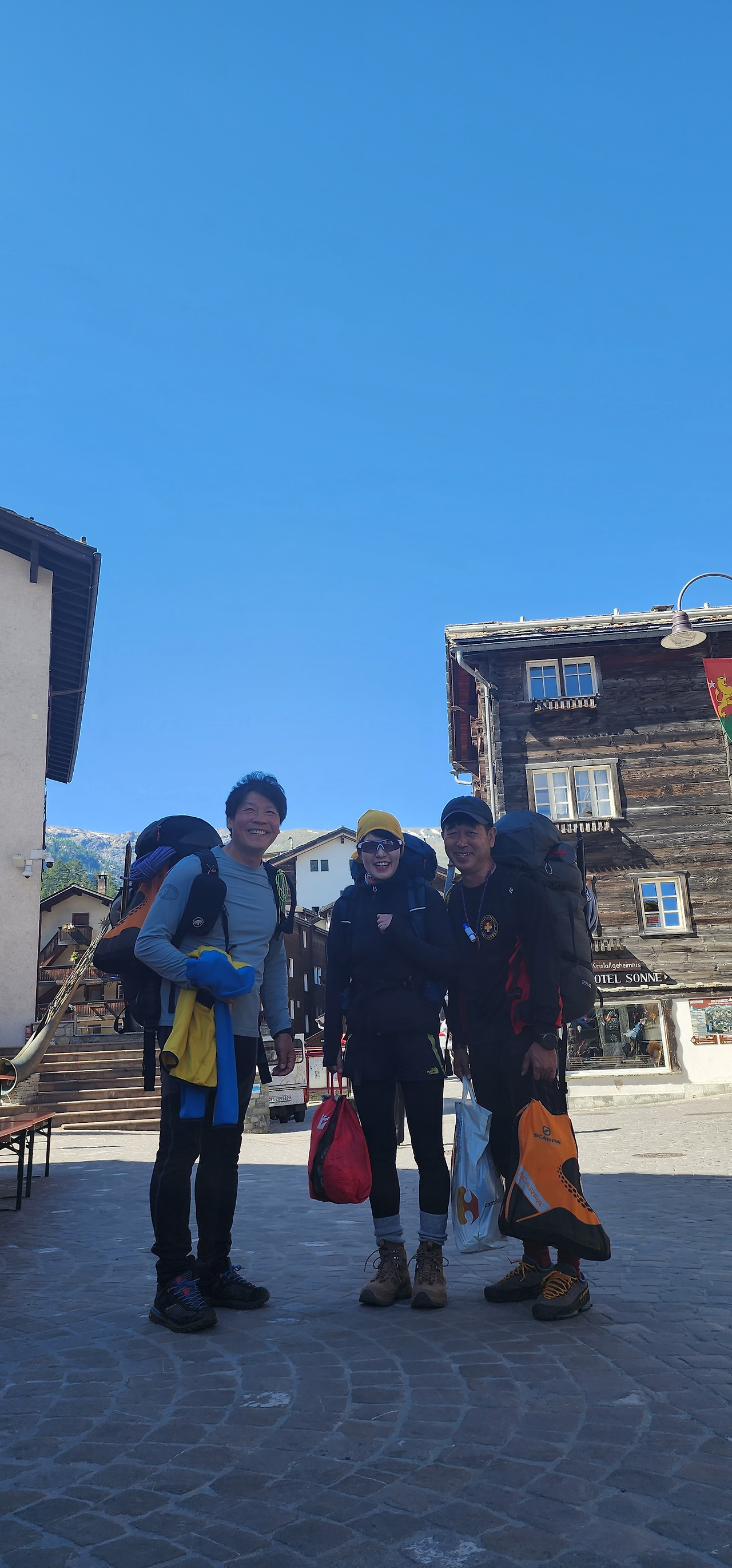 등산학교 시절 함께 강사를 했던 민쌤이 마터호른을 등정하고 싶다고 강력하게 어필한 덕분에 시작한 해외 원정이란다. 민쌤은 꽤 여러 해 만에 뵙고, 박쌤은 안 뵌 지 일 년이 다 되어가지 싶다. 한국에서 뵐 때랑은 또 다른 맛이다. 15년 전 같이 야영하고, 산에 오르던 쌤을 체르마트에서 다시 뵐 줄이야~