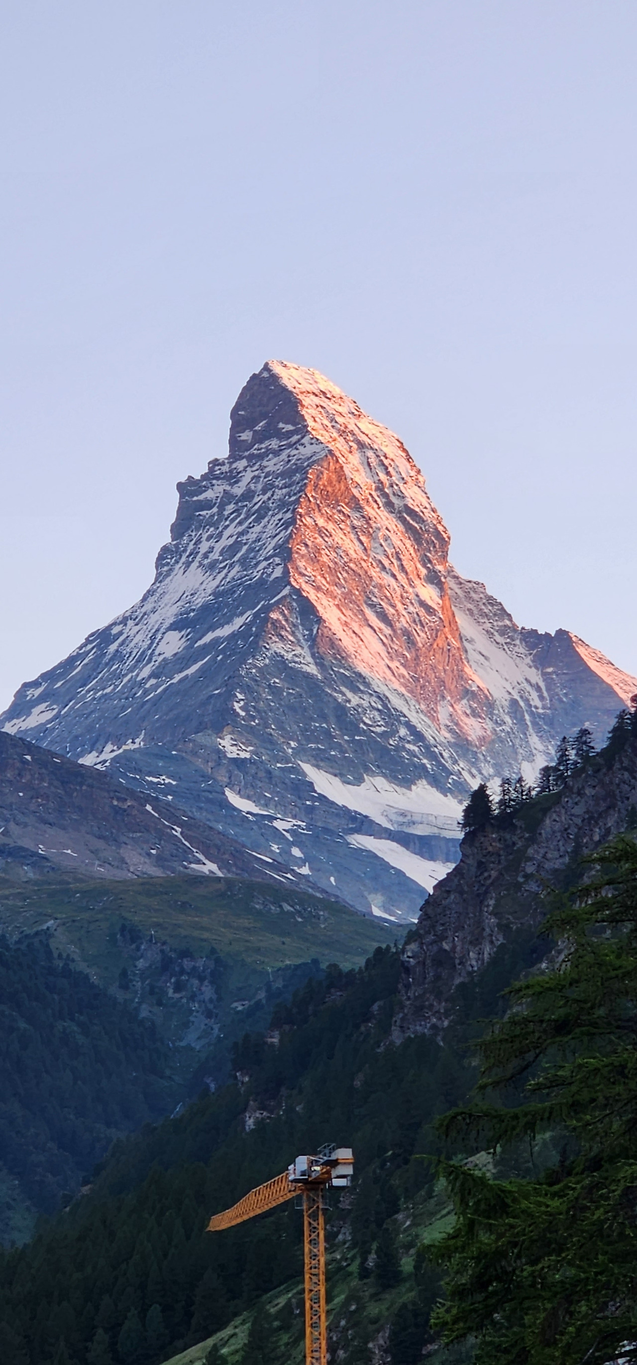 구름 한 점 없는 하늘 덕분에, 마터호른의 일몰을 선명하게 즐긴다. 멋지다.