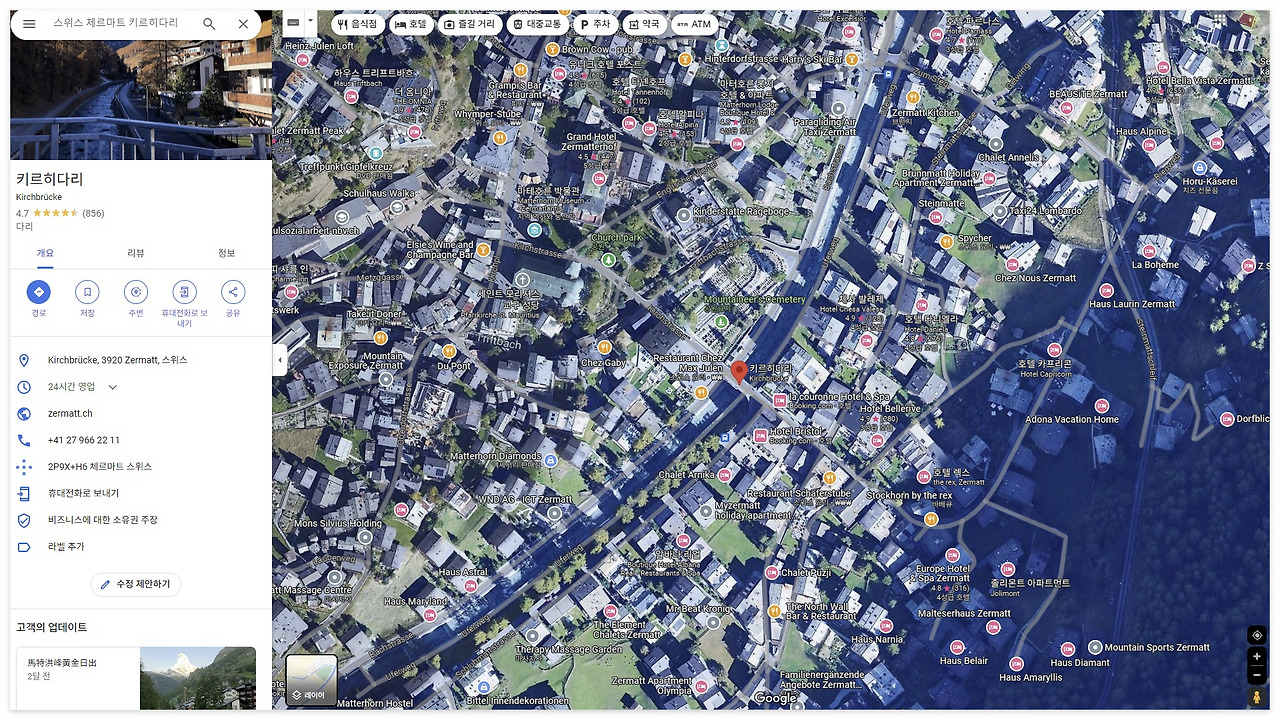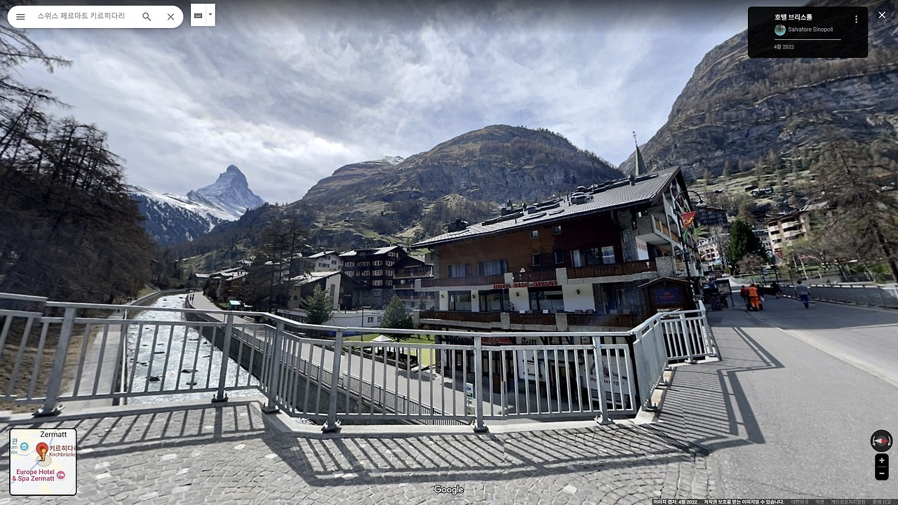 Google Map: 체르마트 키르히(Kirchbrücke) 다리에서 바라본 마터호른
