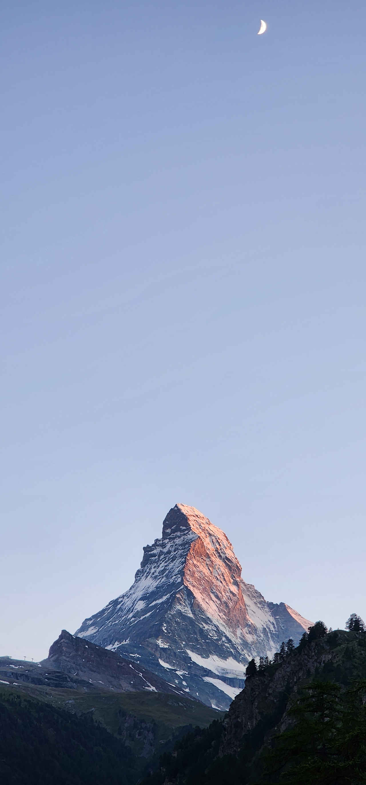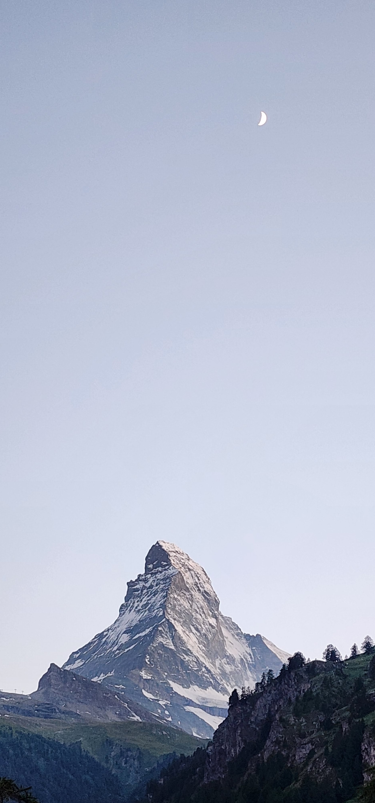 Zermatt: 해 질 녘 마터호른 + 달