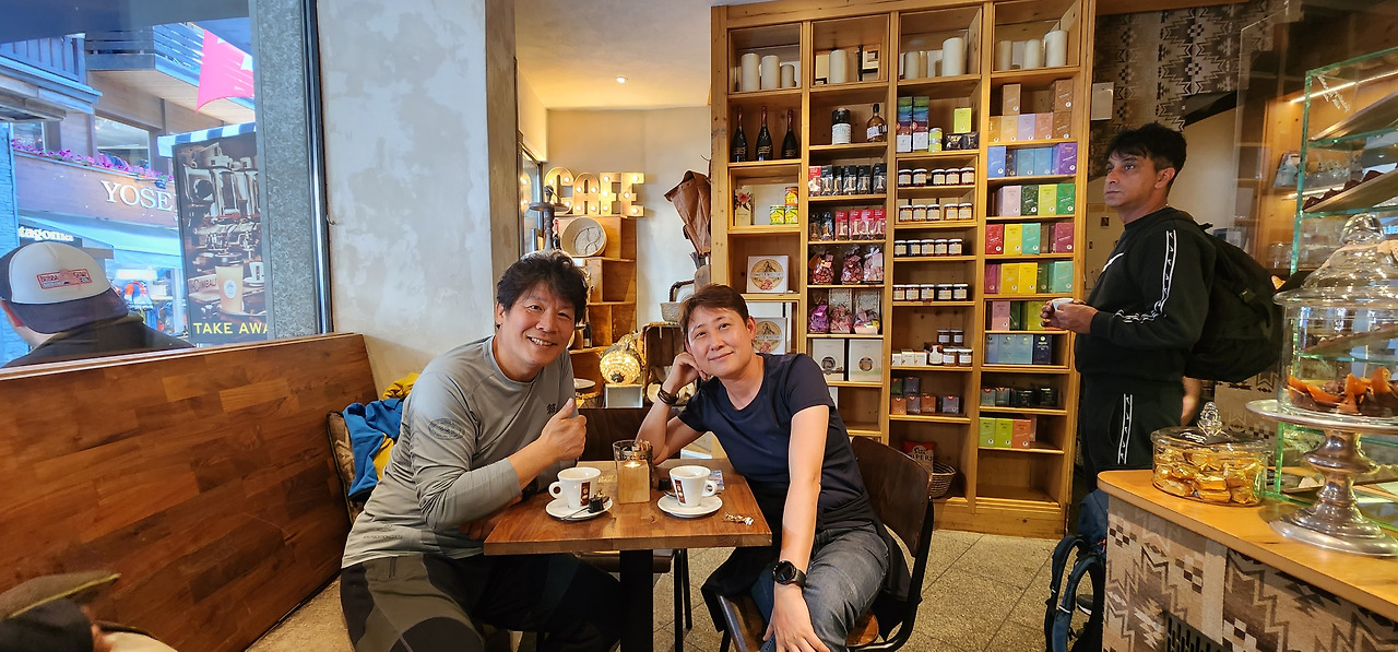 역전에서 반갑게 인사를 나누고, 근처 카페로 들어간다.