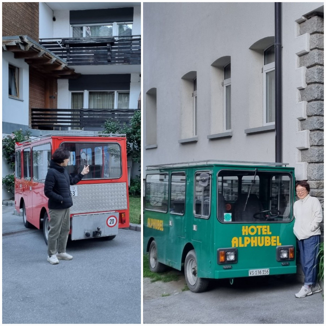 Zermatt: 체르마트 시내를 다니는 작은 전기차 앞에서