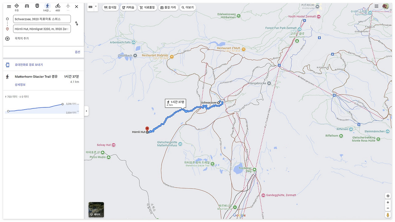 Google Map: Schwarzsee - Hörnli Hut
