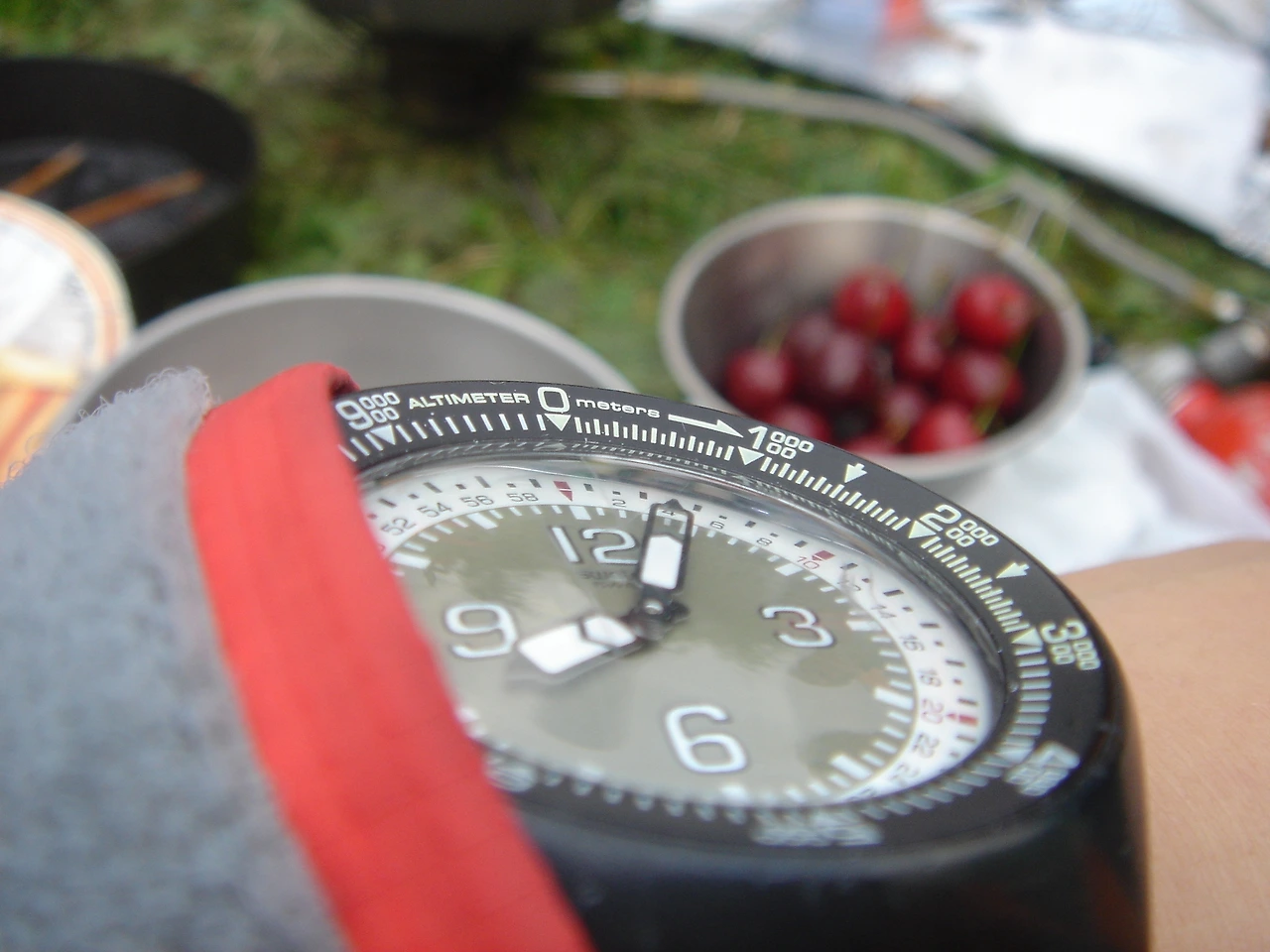 2007년 7월 22일 오전 8시, 체르마트 야영장에서 하얀 쌀밥 + 된장찌개로 아침 식사를 마친다. 오, 디저트에는 동네 마트에서 산 체리도 있다.