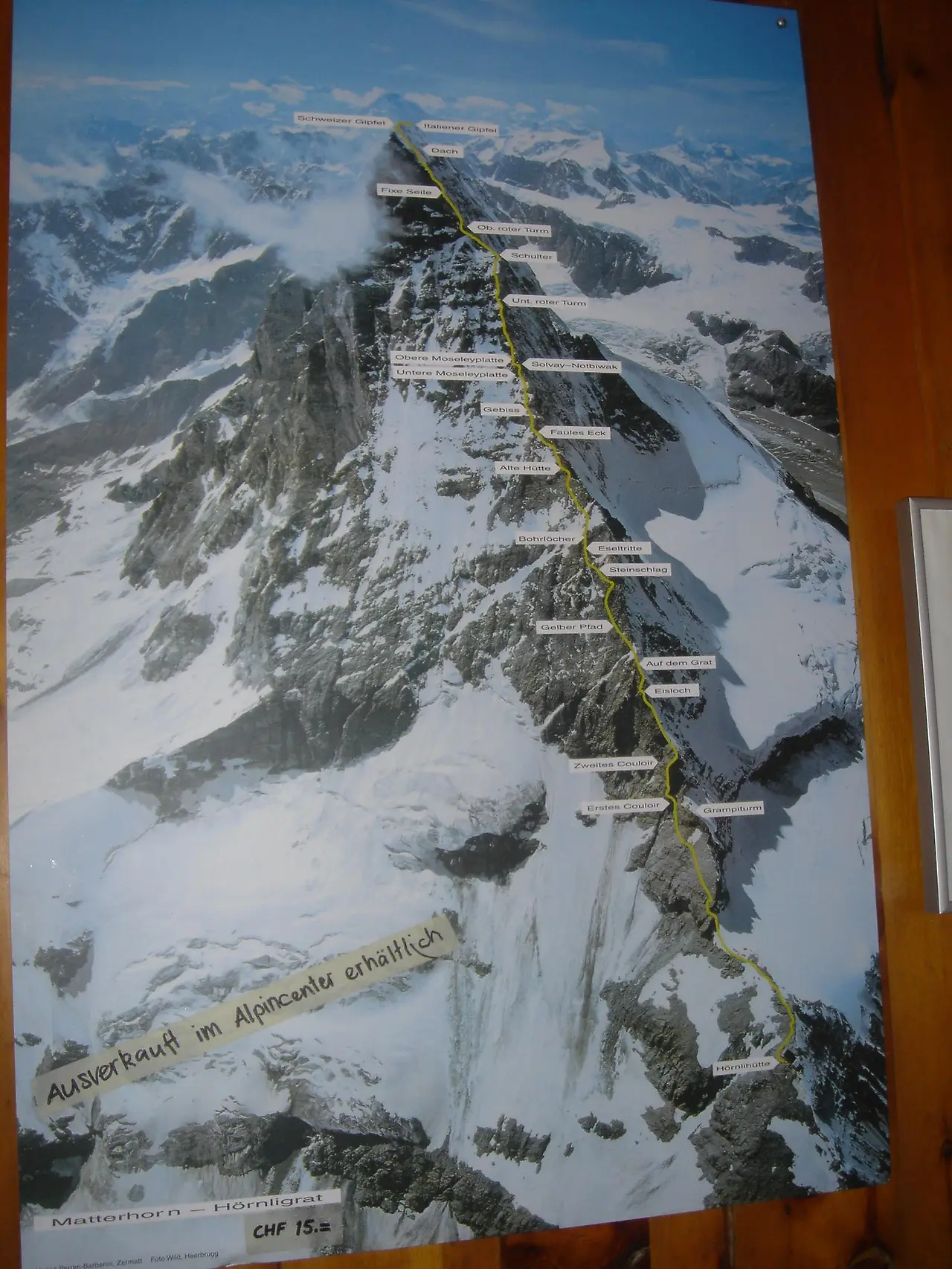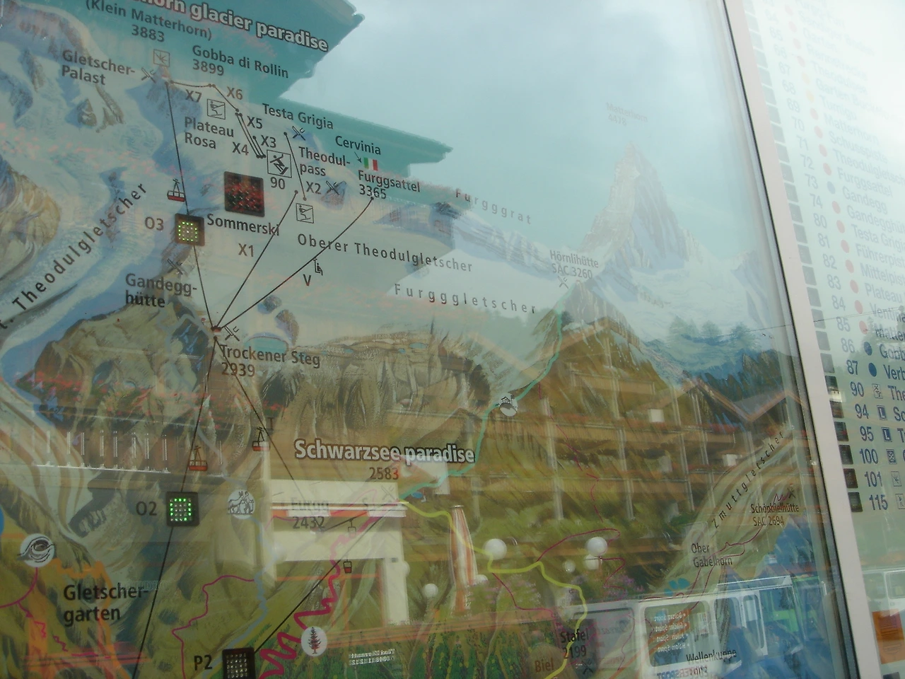 Zermatt: 회른리 산장 안에 있는 마터호른 루트 안내, 2007