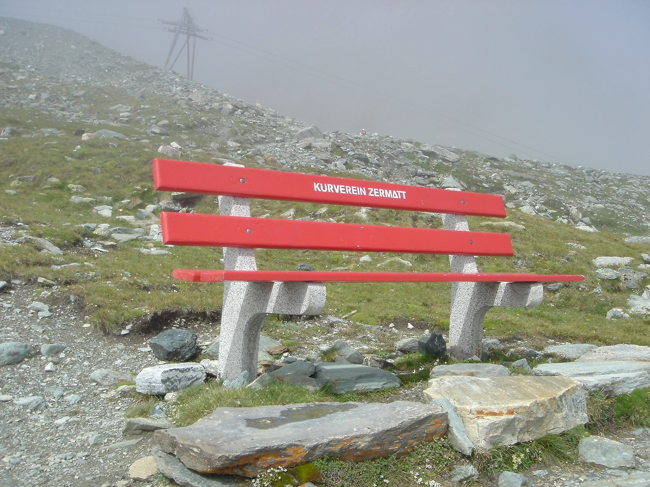 Zermatt: 회른리 산장 가는 길에 있는 벤치, 2007